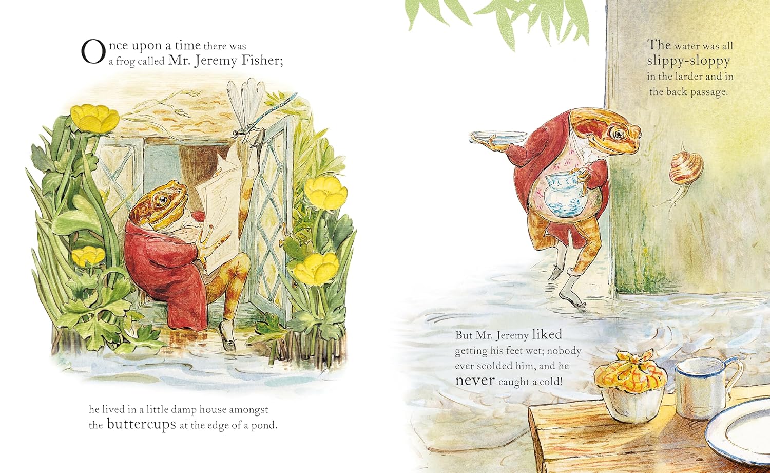 Once upon a time, there was a frog called Mr. Jeremy Fisher; he lived in a little damp house amongst the buttercups at the edge of a pond.
