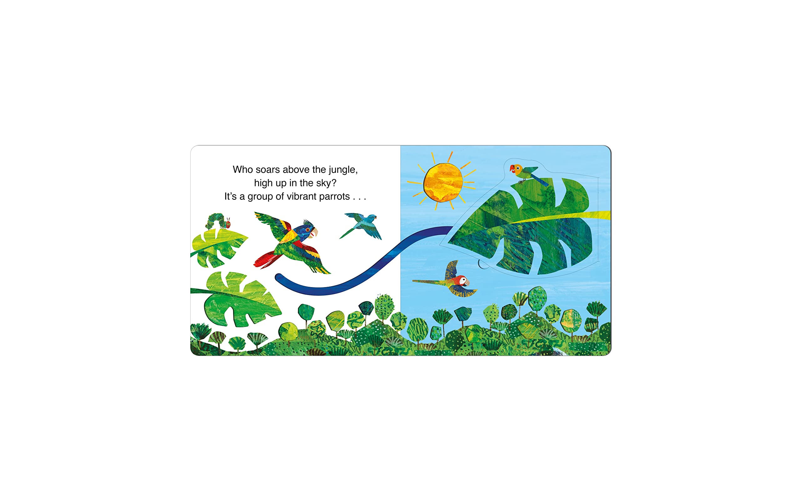 Follow the finger trails and lift the flaps to discover sleeping sloths, swooping parrots, crawling tigers and many more. A gentle rhyming narrative with a die-cut finger trail, die-cut details and a chunky flap on every page. There is so much for little hands to explore in this fun first introduction to jungle creatures and their habitat.