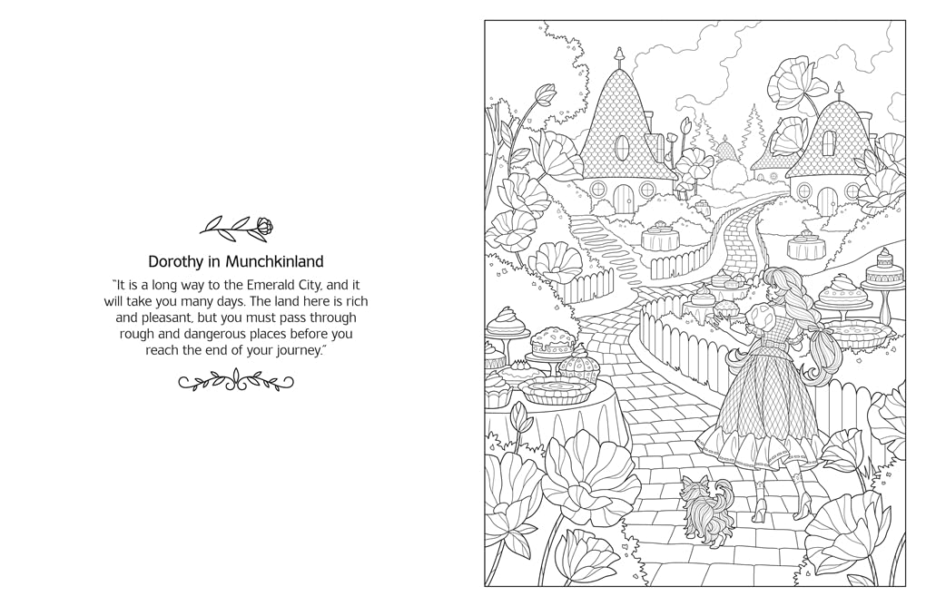 Exploring the stories of the Wicked Witch of the West, the Good Witch, Glinda and the rest of the Wizard of Oz gang, colourists will embark on a thrilling technicolour escapade, taking in fantastical settings such as the Emerald City, the poppy field and Glinda’s castle, as well as all of the best-loved, larger-than-life characters along the way.