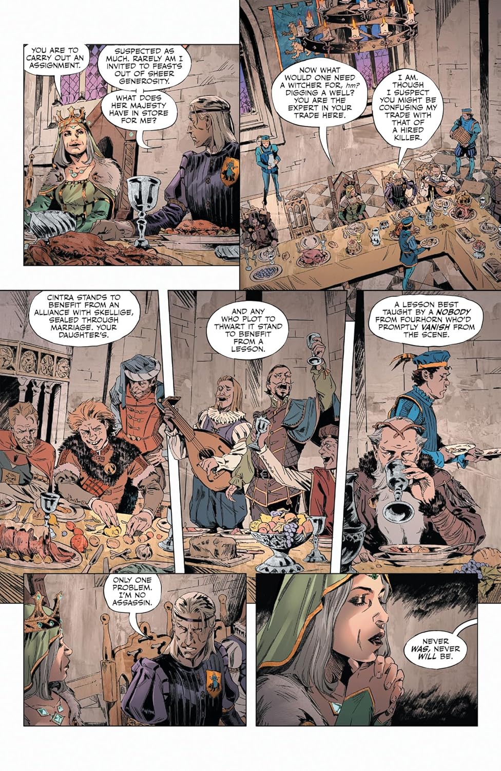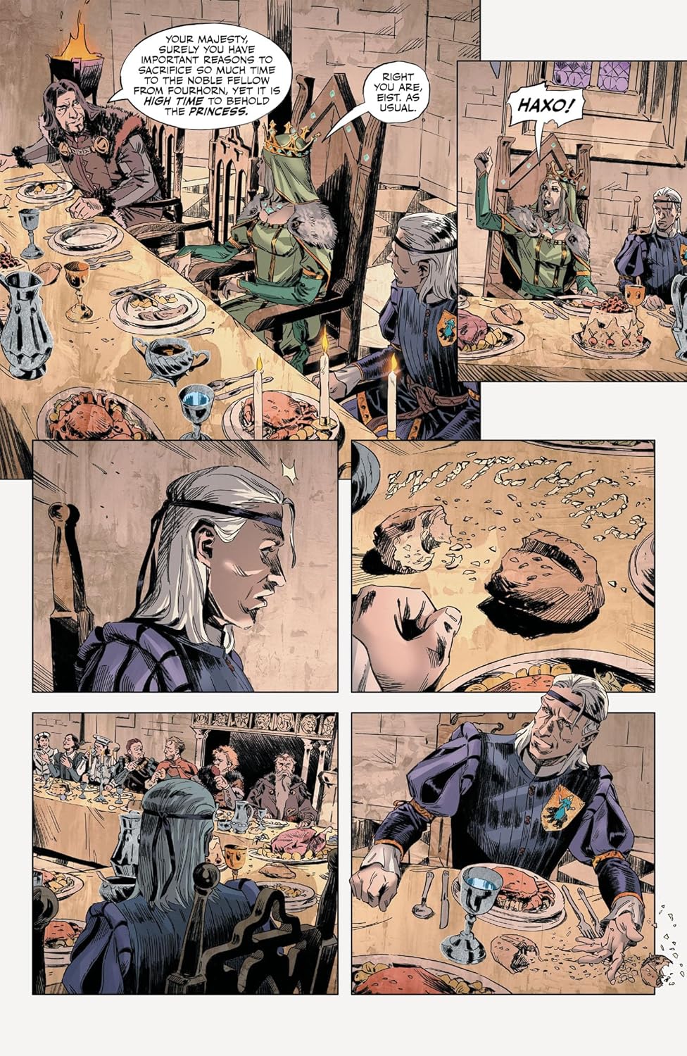Geralt is invited to a banquet at the Kingdom of Cintra. The Princess has come of age and suitors prepare to present themselves for her hand in marriage. Wary of the Queen’s invitation, Geralt attends the dinner with caution. When a mysterious uninvited guest, bearing the armor of a knight enters the hall, a bold declaration and a shocking revelation ignites the party into chaos and uproar.