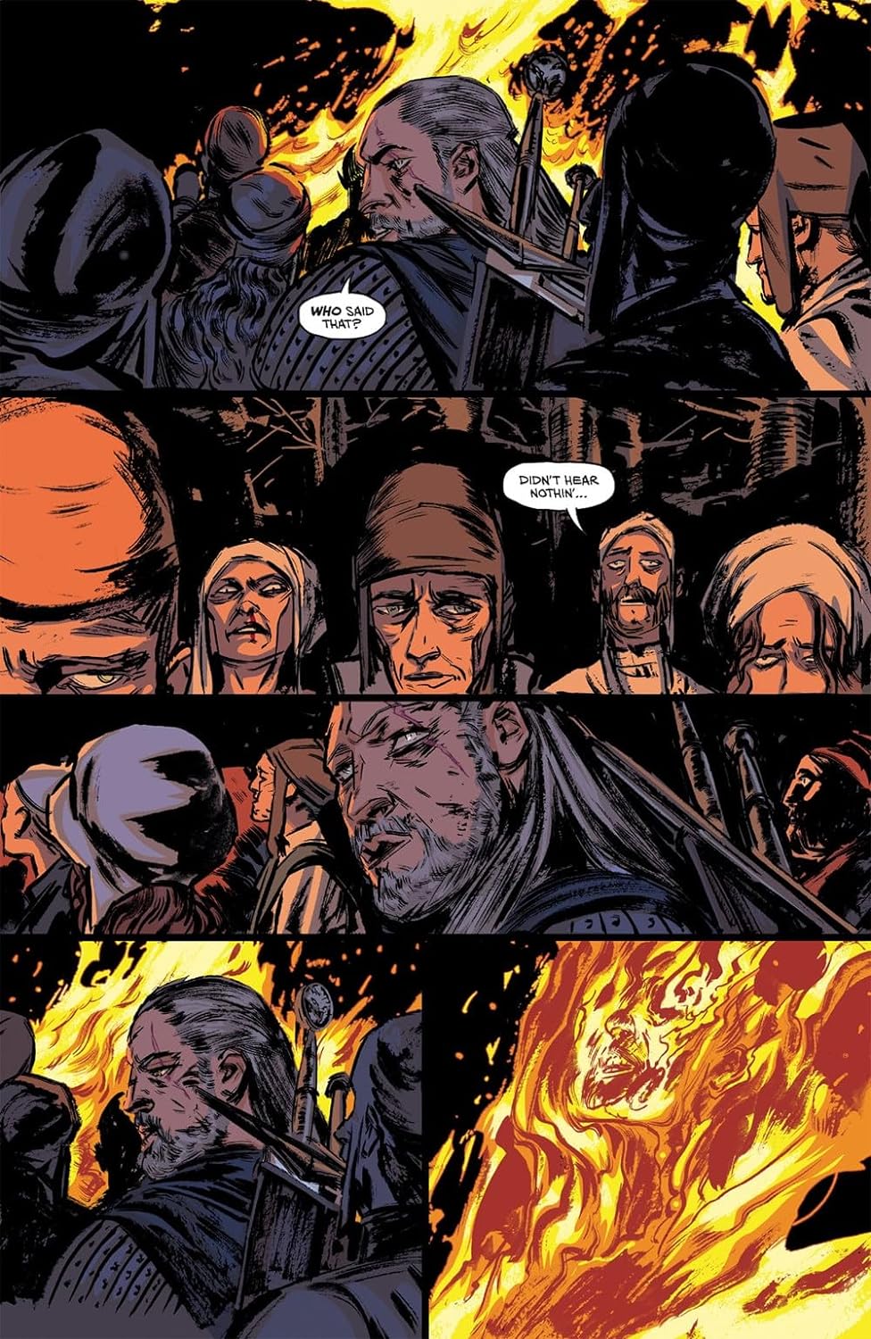 In Of Flesh and Flame, Dandelion the bard gets Geralt transported to a faraway land, plagued by dark forces. In Fading Memories, Geralt is hired by the mayoress of a small town where an unusual pack of foglets attacks children, but something feels off about this new threat. In Witch's Lament, a witch burned at the stake haunts Geralt, sending him an ominous warning. And in a bonus story, a young nekker takes an unpredictable journey through the woods.