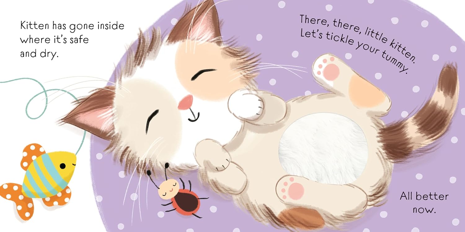 Help take care of an adorably sweet, snuggly kitten in this engaging touchy-feely book. Tickle under its chin when it's feeling lonely, stroke its back when it's had a little fright, rub its paw better after it steps in a cold puddle. Then, when it's safe and warm, tickle its soft, fluffy tummy.