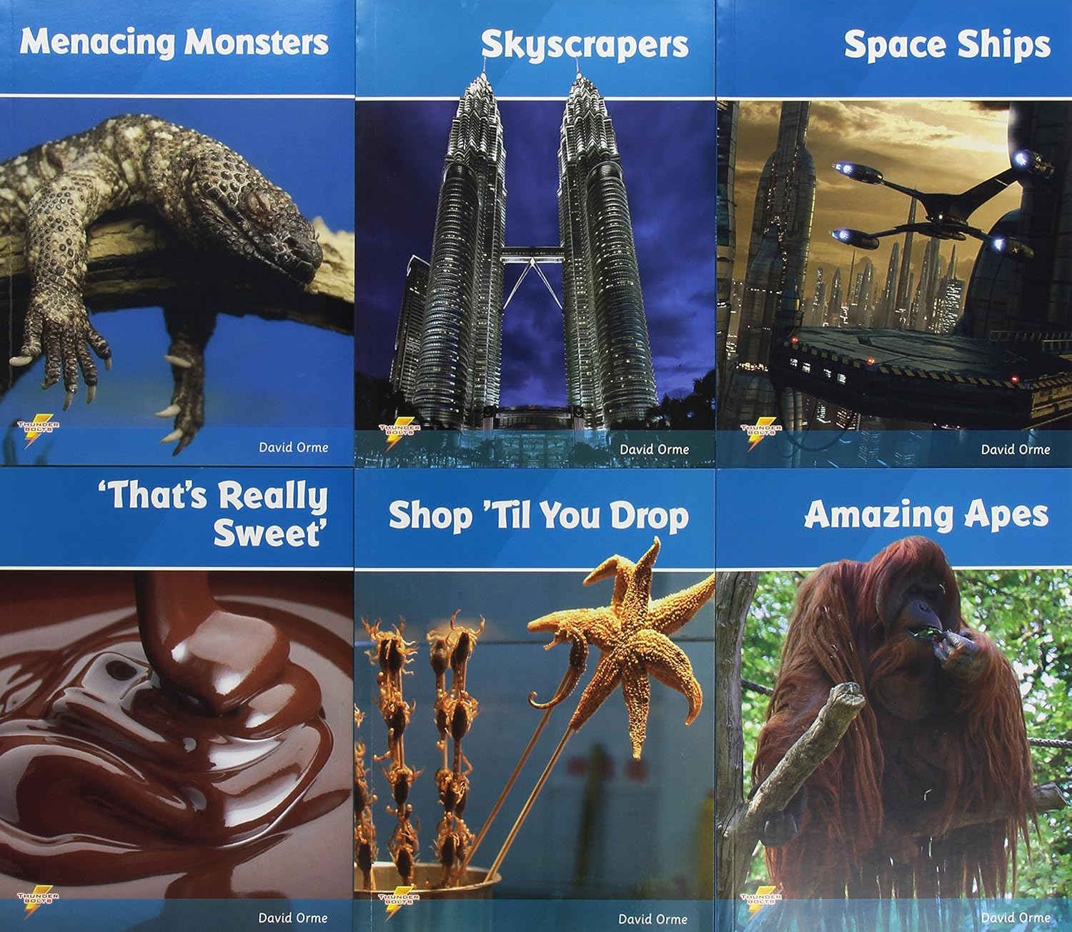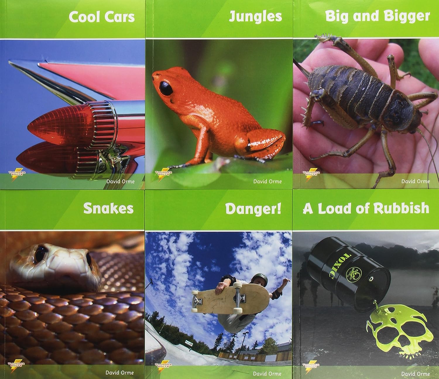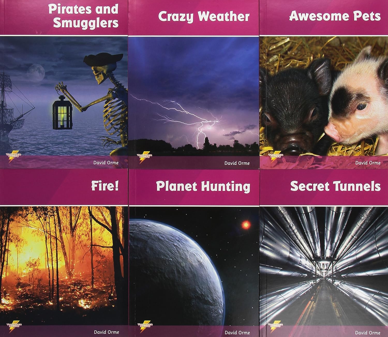 Thunderbolts is a series of leveled reading books covering popular non-fiction topics, with particular appeal to older readers. Each book contains a non-fiction section followed by a fiction story on the same topic. There are four sets in the series. Each set contains six books and is leveled to allow progression. These books are also valuable as starting points for discussion and creative work. The Thunderbolts Library Pack includes all 24 reading books from the series, Set 1 the first six books have no words allowing readers with greatest difficult to engage. Set 2 introduces a limited number of words, and Sets 3 and 4 offer further progression.