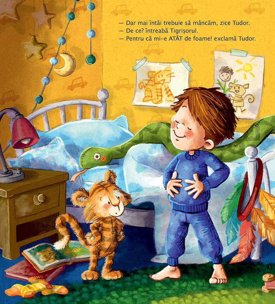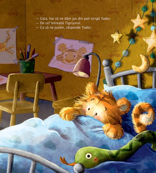 Iar Tigrișorul pune mereu câte o întrebare: De ce trebuie să ne dăm jos din pat? De ce mergem la grădiniță? Și de ce trebuie Tudor să se spele pe dinți? Ce bine că Tudor știe atât de multe lucruri!