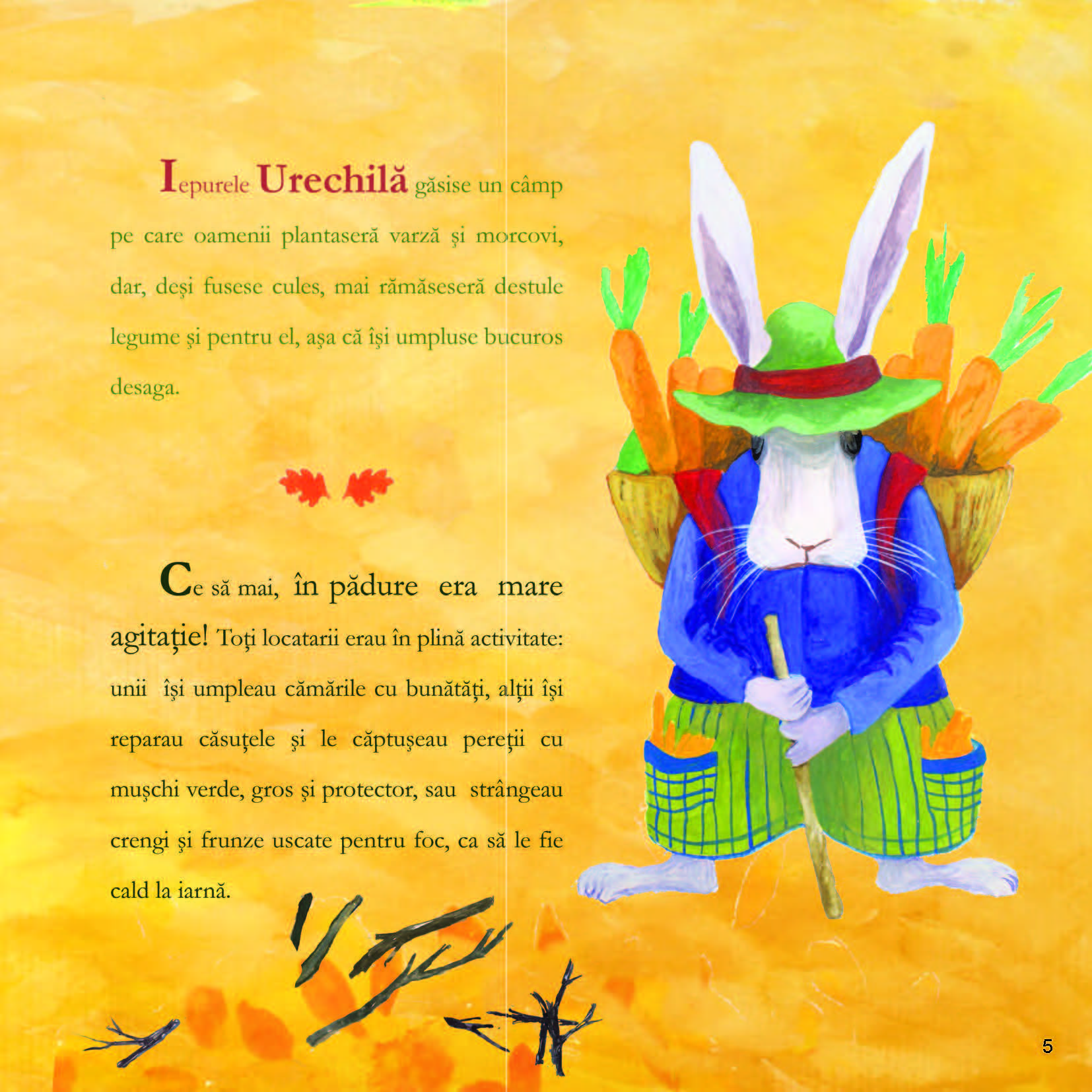 Din cele nouă poveşti inventate de Eugenia Glăvan şi minunat ilustrate de Irina Abaza aflăm ce se întâmplă în pădurea de peste deal de la sosirea iernii şi până în ziua de Crăciun: surpriza primei ninsori, pregătirile de Sărbători, certuri şi împăcări, bricolajul cadourilor, decorarea pădurii, întâlnirea Despinei, fiica pădurarului, cu locuitorii pădurii şi cu spiriduşul Ştie-Tot şi multe alte întâmplări grozave.