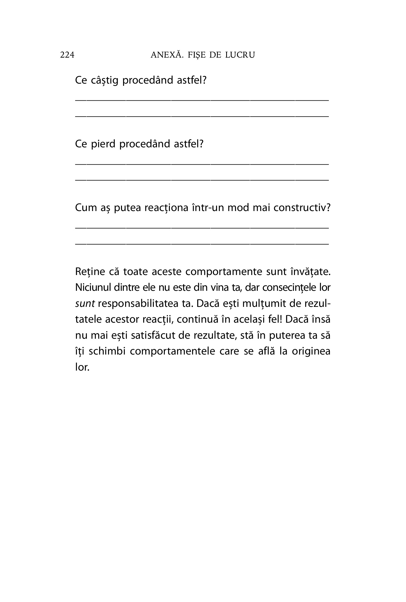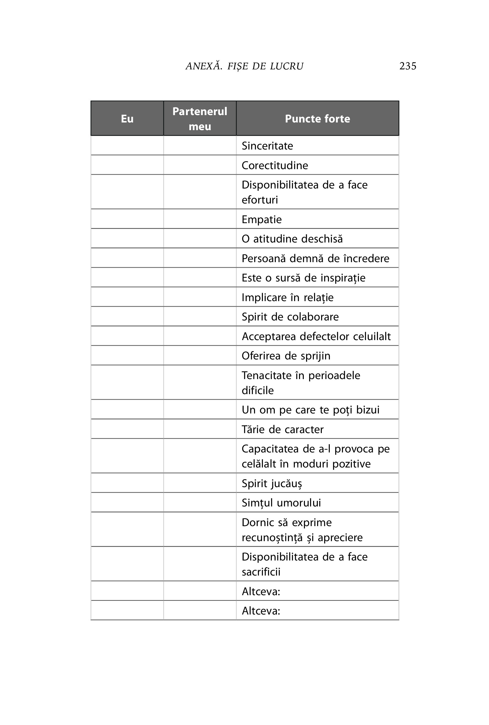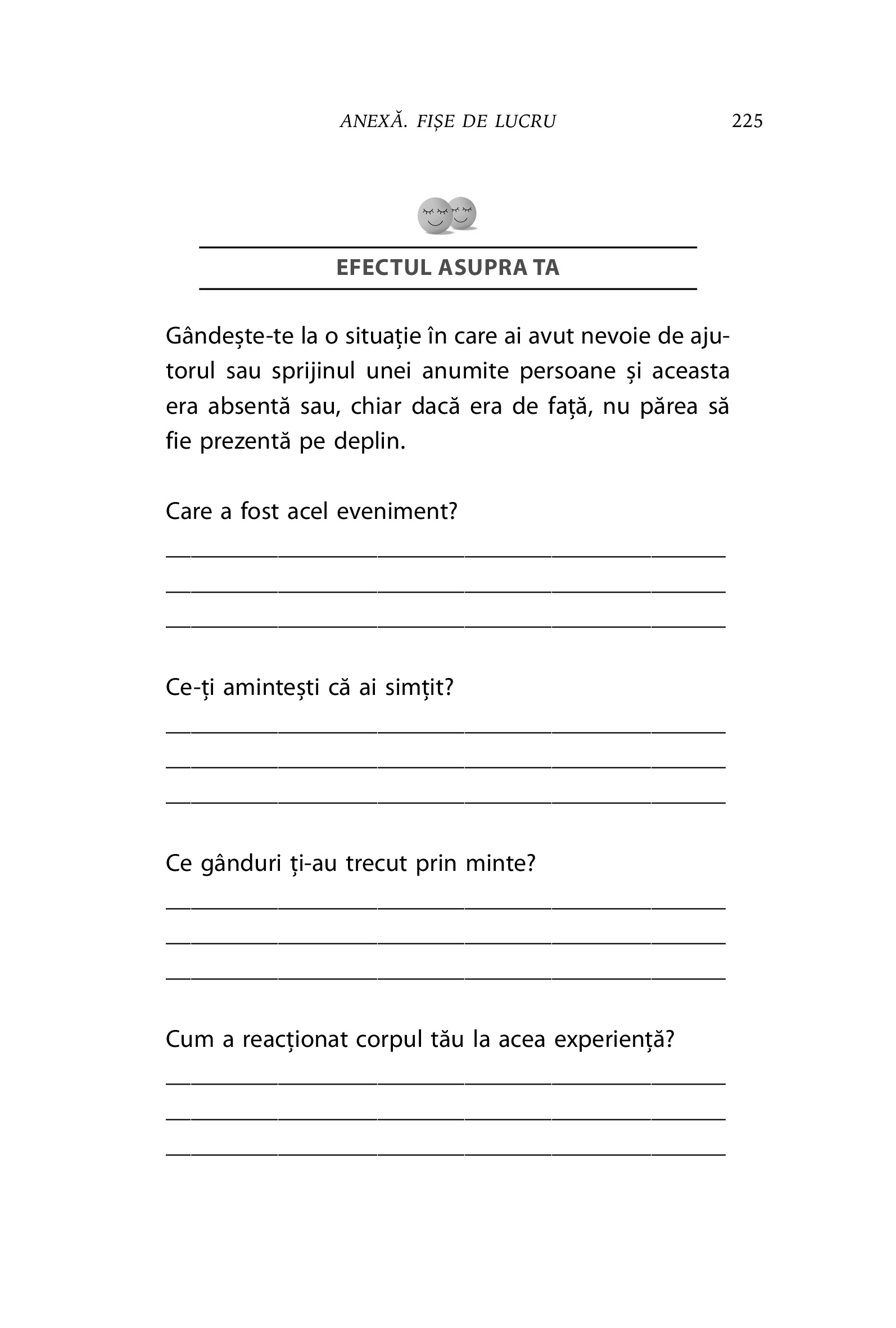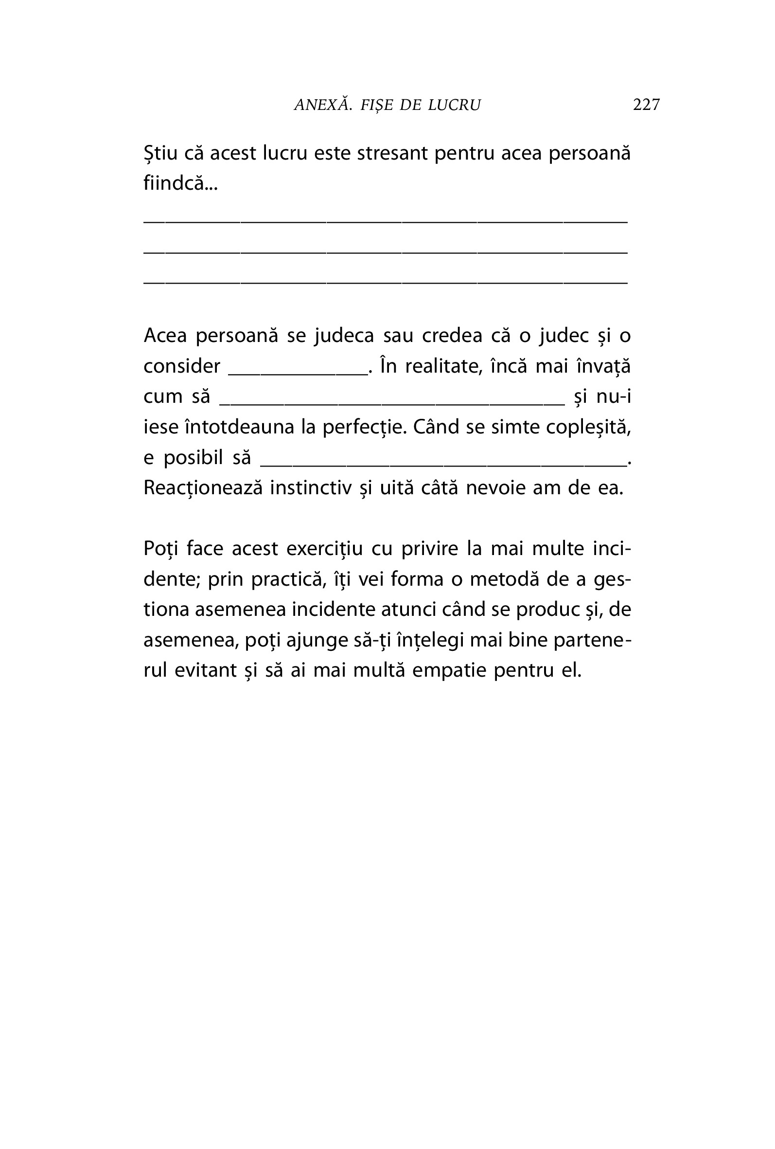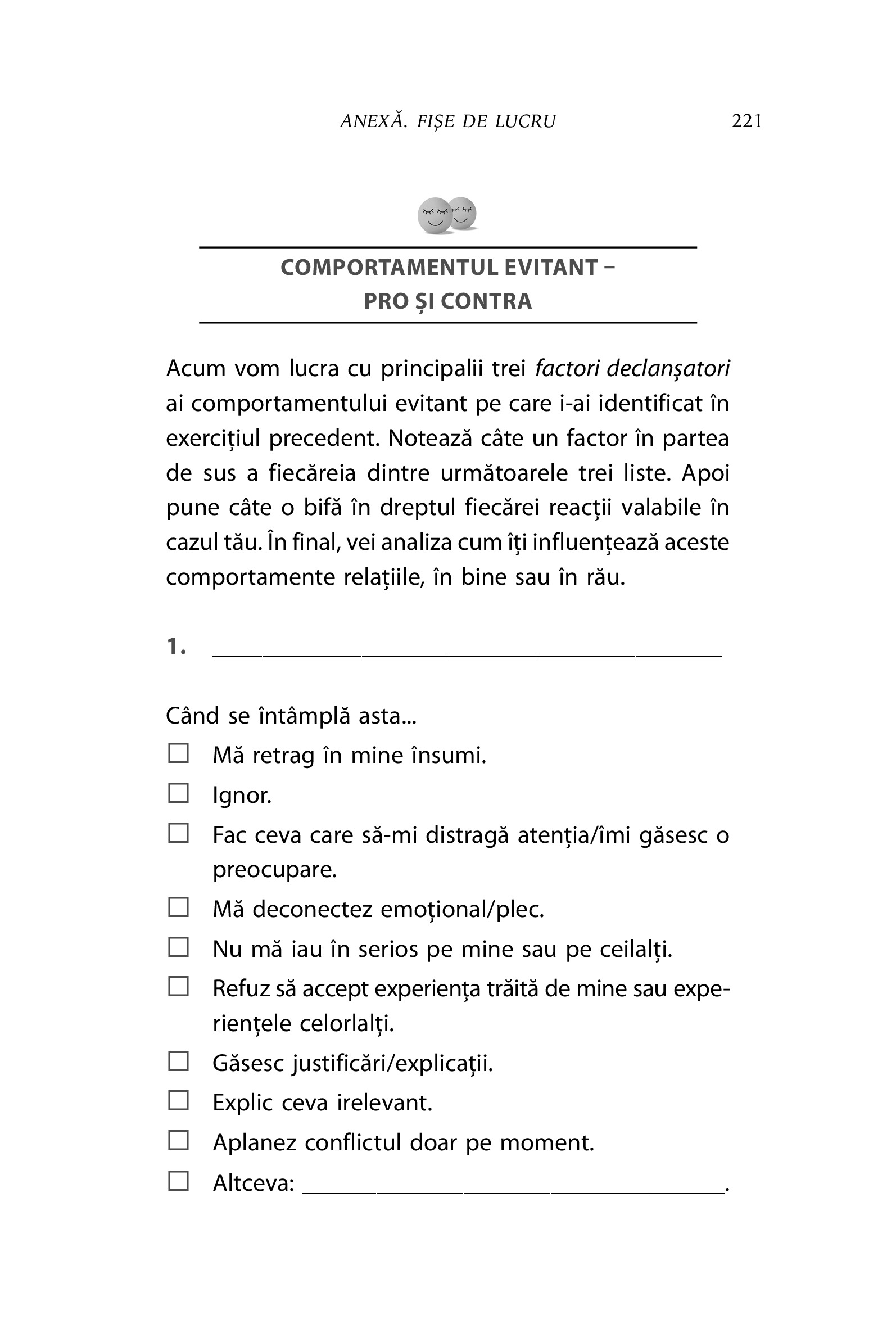 Răspunde la chestionarele din carte, încearcă exercițiile pe care ți le propune autoarea și află care este tipul tău de atașament, precum și tipul de atașament al celor dragi. Vei învăța astfel să înțelegi și să accepți emoțiile și gândurile ce stau la baza reacțiilor tale, vei putea să le gestionezi cu mai multă ușurință și vei fi capabil să faci alegeri mai înțelepte, pentru experiențe relaționale noi și pline de optimism.