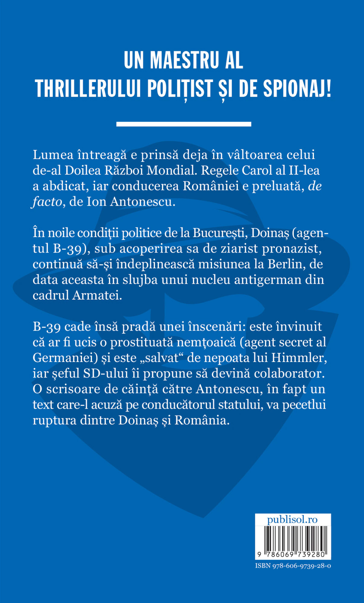 Regele Carol al II-lea a abdicat, iar conducerea Romaniei e preluata, de facto, de Ion Antonescu. In noile conditii politice de la Bucuresti, Doinas (agentul „B-39“), sub acoperirea sa de ziarist pronazist, continua sa-si indeplineasca misiunea la Berlin, de data aceasta in slujba unui nucleu antigerman din cadrul Armatei. „B-39“ cade insa prada unei inscenari: este invinuit ca ar fi ucis o prostituata nemtoaica (agent secret al Germaniei) si este „salvat“ de nepoata lui Himmler, iar seful SD-ului ii propune sa devina colaborator. O scrisoare de cainta catre Antonescu, in fapt un text care-l acuza pe conducatorul statului, va pecetlui ruptura dintre Doinas si Romania.