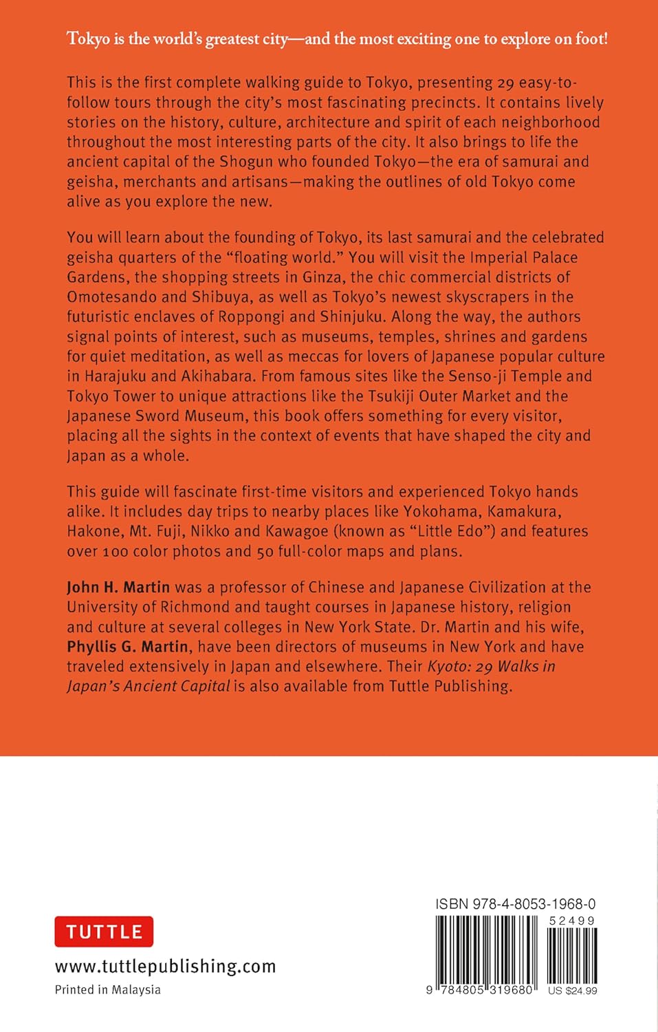 This is the first comprehensive walking guide to Tokyo, presenting 29 easy-to-follow tours through the city's most historic and lively precincts.