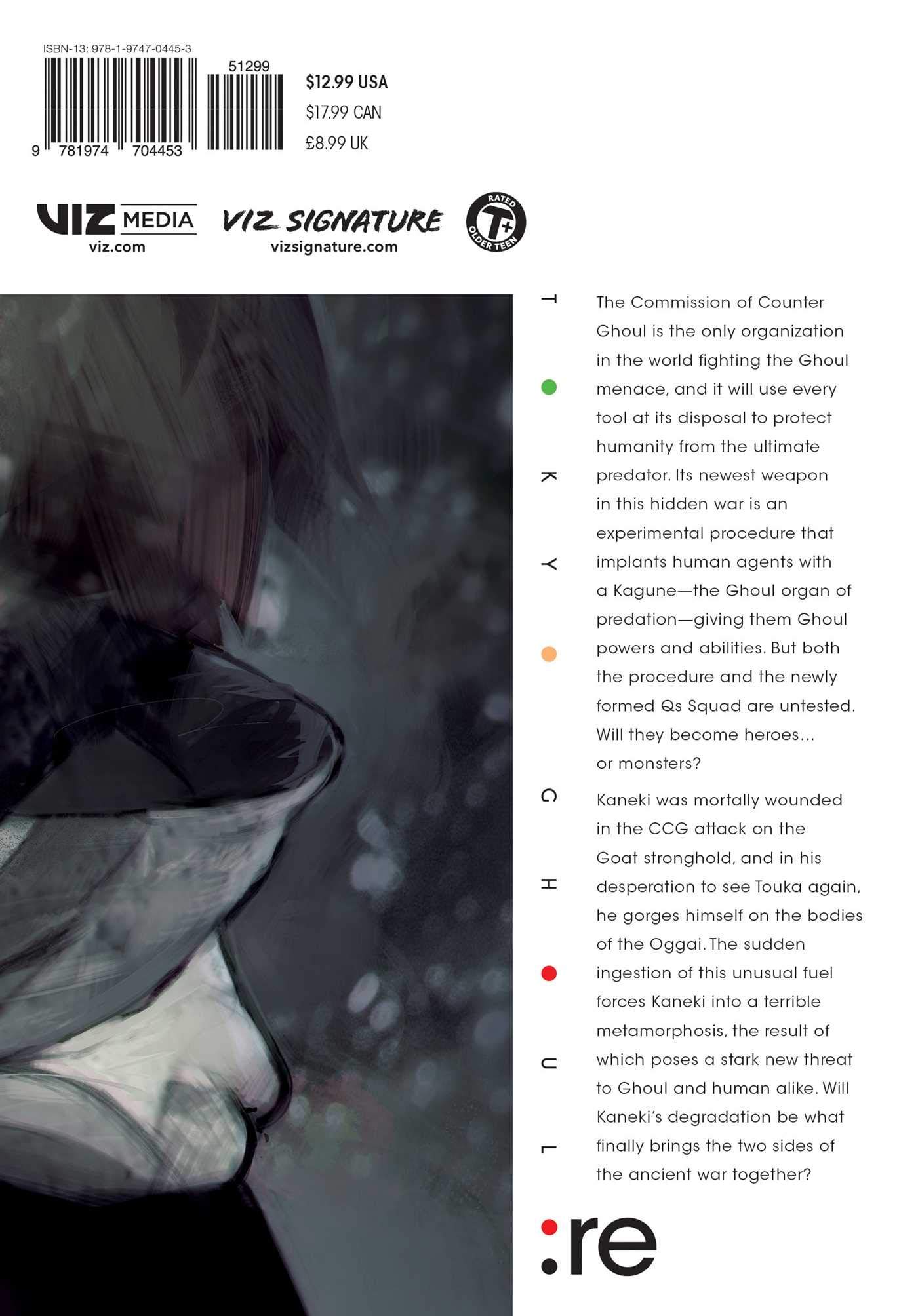 The Commission of Counter Ghoul is the only organization fighting the Ghoul menace, and they will use every tool at their disposal to protect humanity from its ultimate predator. Their newest weapon in this hidden war is an experimental procedure that implants human investigators with a Ghoul’s Kagune, giving them Ghoul powers and abilities. But both the procedure and the newly formed Qs Squad are untested. Will they become heroes…or monsters?!