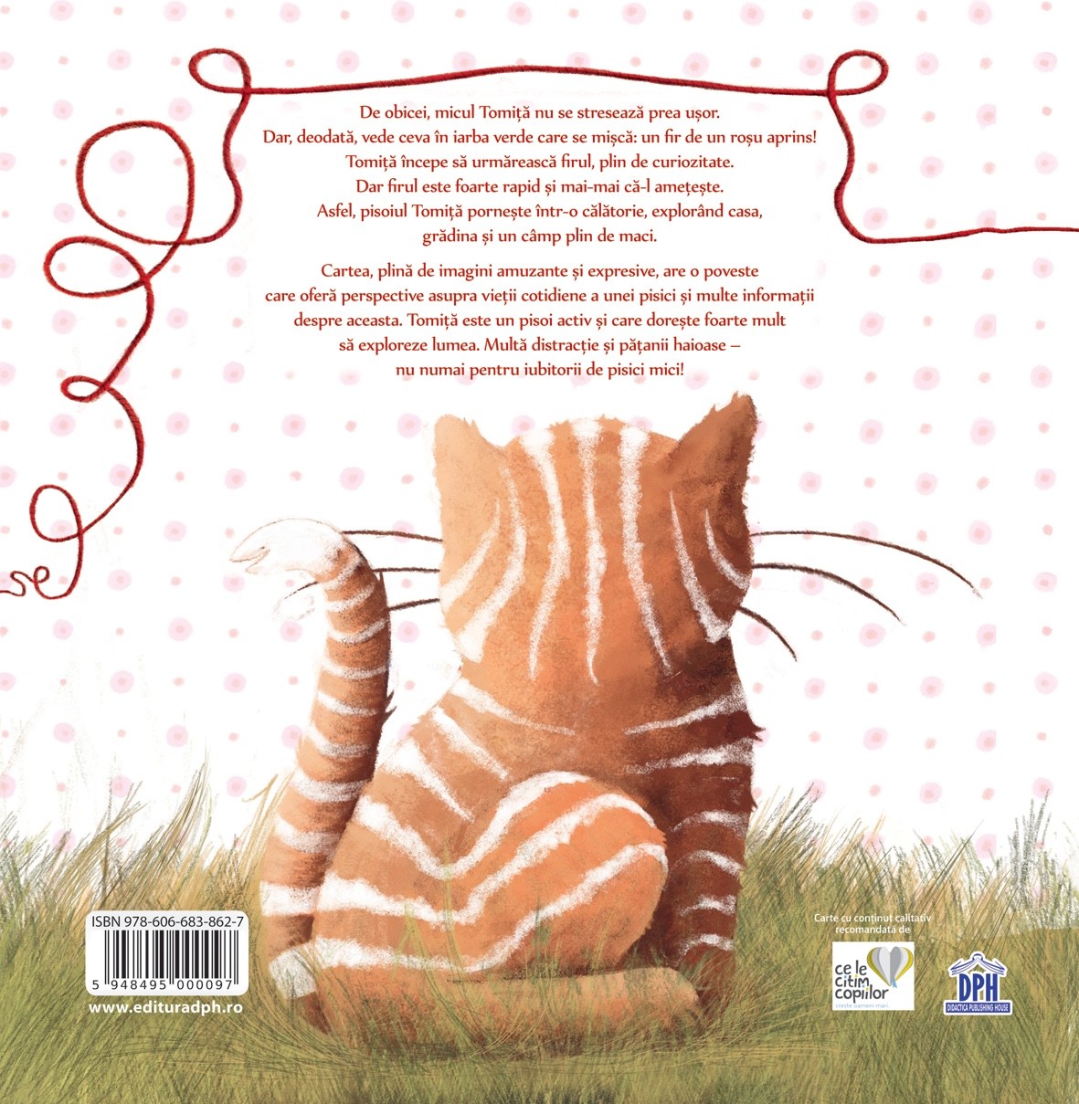 Tomiță începe să urmărească firul, plin de curiozitate. Dar firul este foarte rapid și mai-mai că-l amețește. Asfel, pisoiul Tomiță pornește într-o călătorie, explorând casa, grădina și un câmp plin de maci.