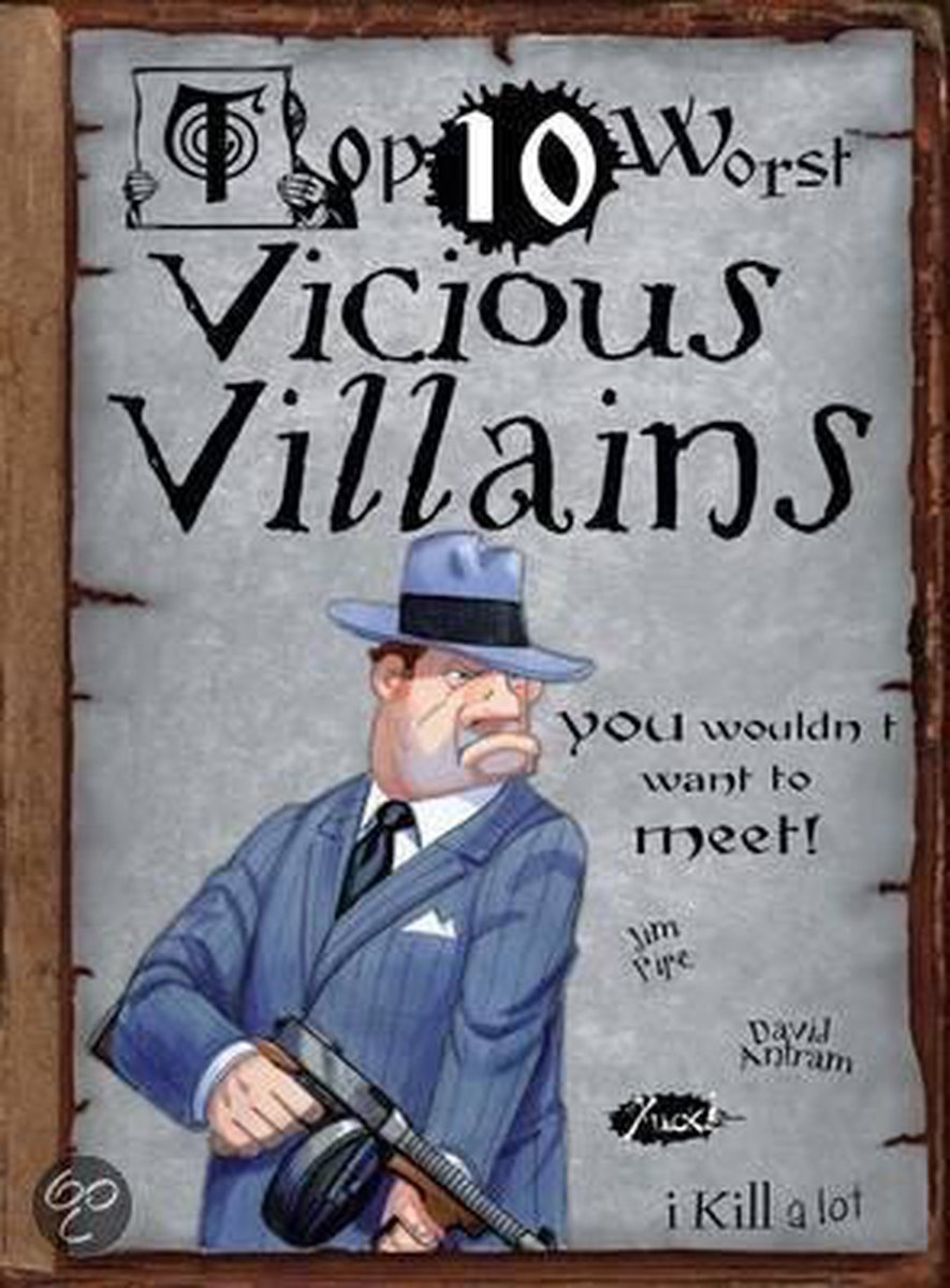 From gun-wielding gangsters to dangerous outlaws of the Wild West, meet the biggest baddies in history and discover how they tortured and terrified their way to the top in Top Ten Worst Vicious Villains. Who was the head of a cursed tribe of killers? Who drank their victims' blood as well as bathing in it? Who killed countless travellers as a sacrifice to a goddess? Find out the answers to these questions plus discover the grim truth behind many more worst of the worst.