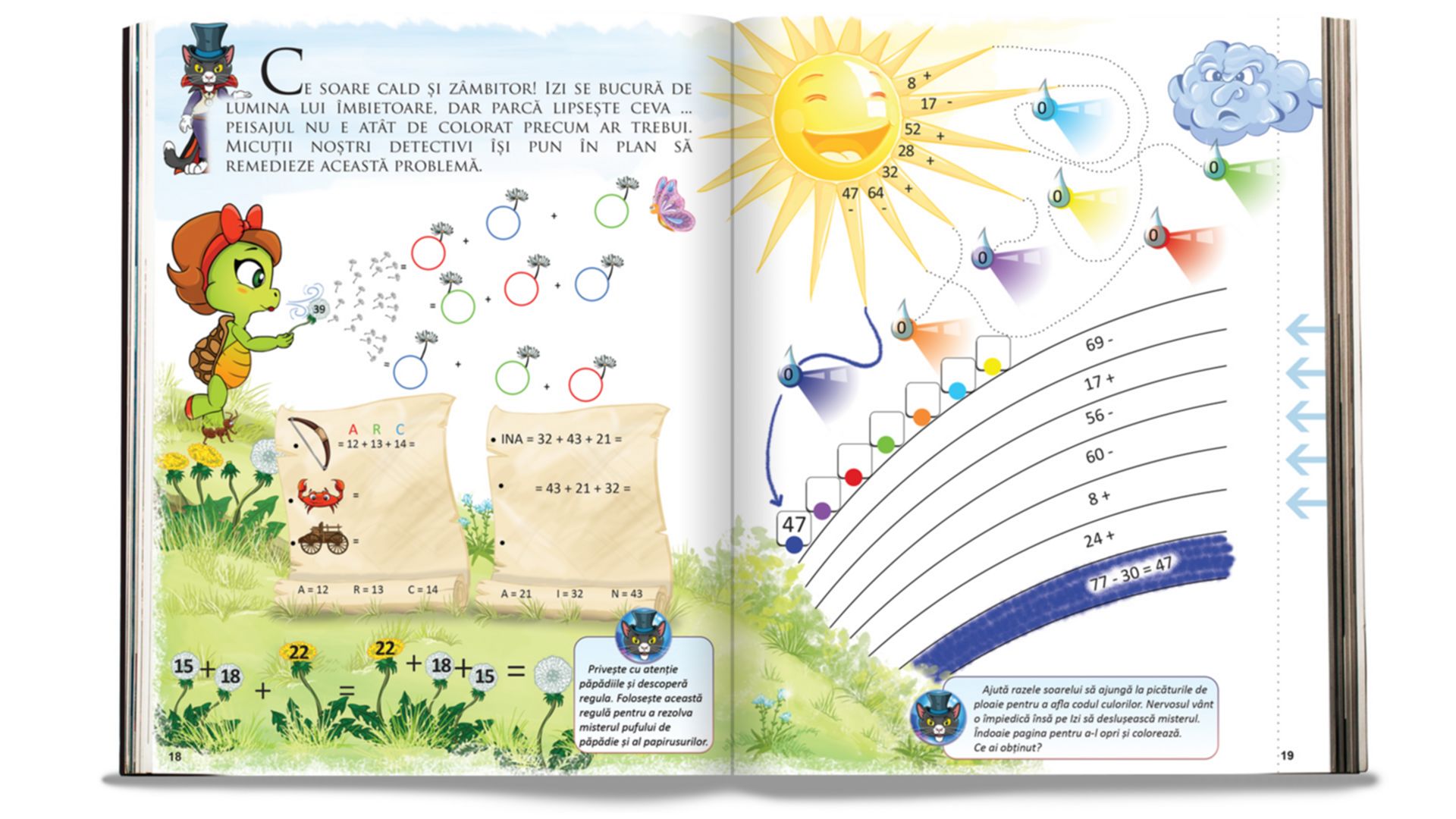 Aplicația conține 24 de jocuri educative și distractive, 31 de animații, 100 de fișe de lucru și 7 teste de evaluare (fișele de lucru și testele sunt disponibile doar pentru aplicația de Windows). Cu ajutorul lor, copilul își verifică, într-un mod plăcut și distractiv, toate cunoștințele de matematică.