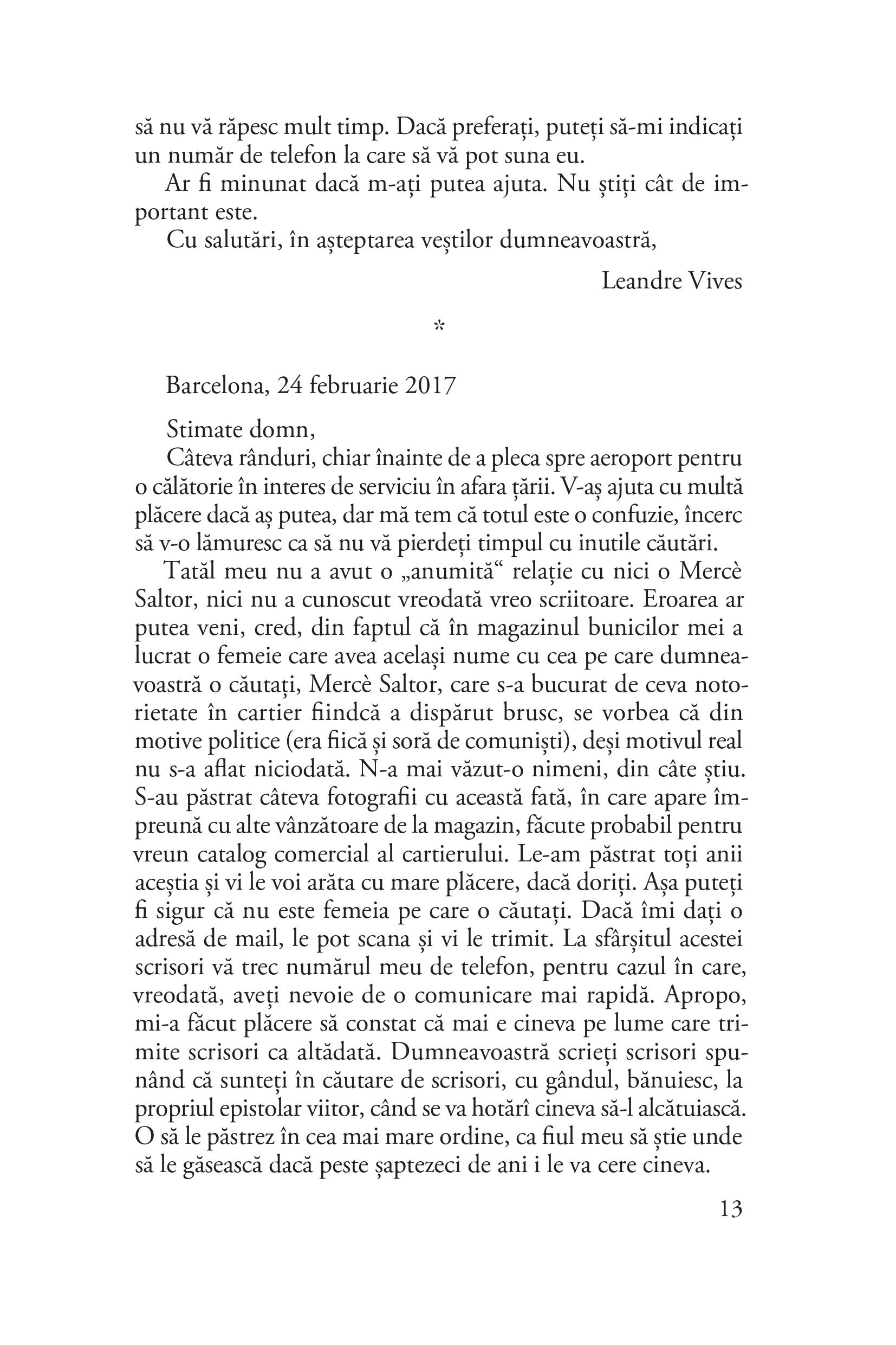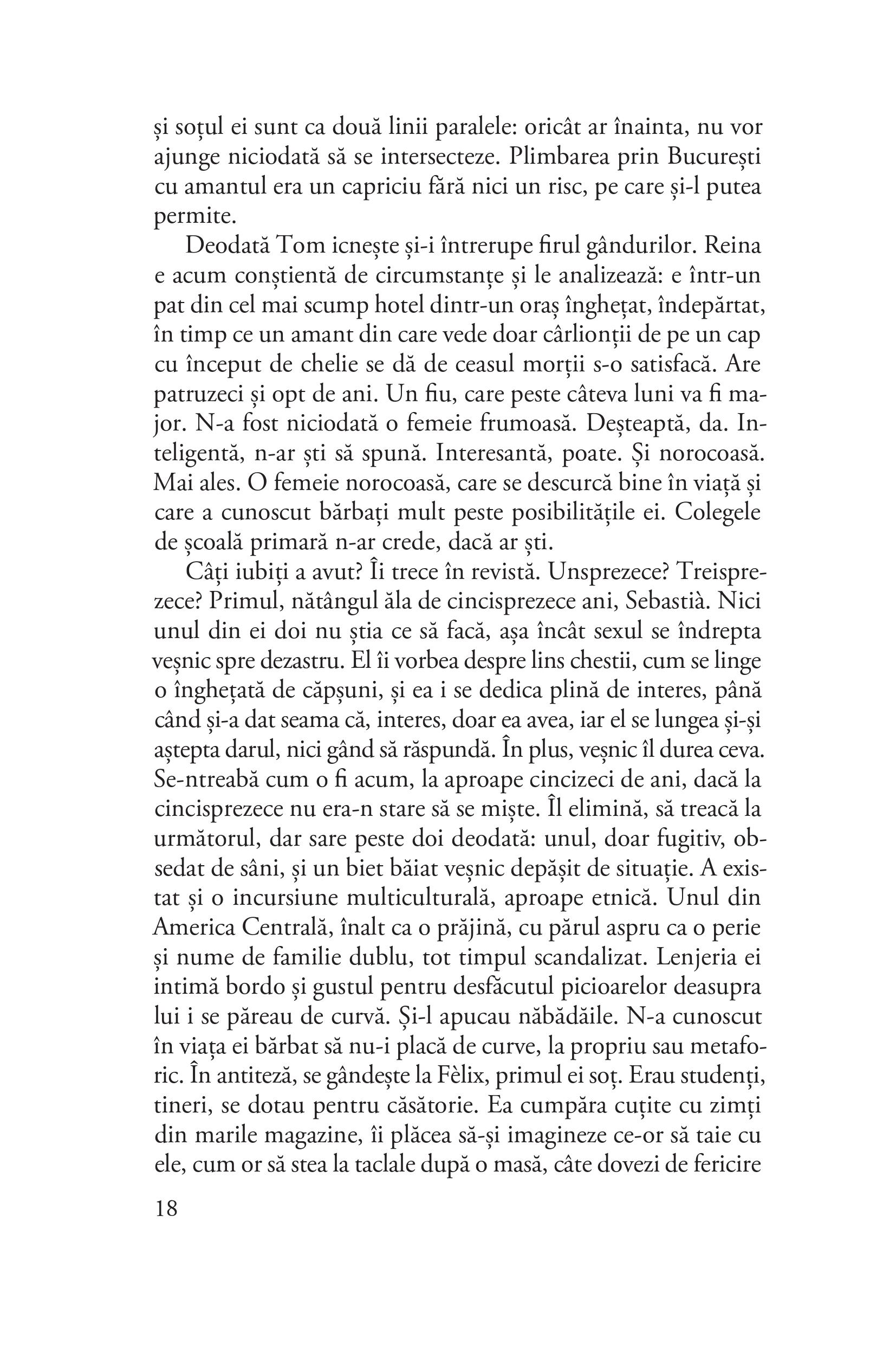 După bestsellerurile Poftă de ciocolată și Jumătate de viață, Care Santos publică în 2018 un roman actual, în care lumina reflectorului cade asupra fragilității relațiilor de familie.