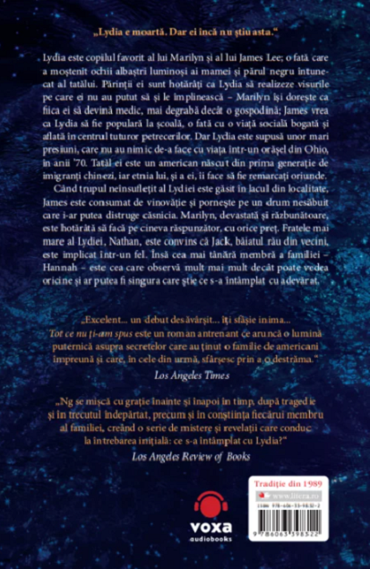 Lydia este copilul favorit al lui Marilyn și al lui James Lee; o fată care a moștenit ochii albaștri luminoși ai mamei și părul negru întunecat al tatălui. Părinții ei sunt hotărâți ca Lydia să realizeze visurile pe care ei nu au putut să și le împlinească – Marilyn își dorește ca fiica ei să devină medic, mai degrabă decât o gospodină; James vrea ca Lydia să fie populară la școală, o fată cu o viață socială bogată și aflată în centrul tuturor petrecerilor. Dar Lydia este supusă unor mari presiuni, care nu au nimic de -a face cu viața într-un orășel din Ohio, în anii ’70. Tatăl ei este un american născut din prima generație de imigranți chinezi, iar etnia lui, și a ei, îi face să fie remarcați oriunde.