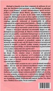 "Bărbaţii şi femeile şi-au ţinut companie de milioane de ani deja, dar întrebarea încă persistă: ce ştiu bărbaţii cu adevărat despre sexul frumos? Această cutremurătoare operă enciclopedică a celebrului Knott Much, specialist în antropologia sexelor, în mod sigur va face să fie uitate toate prejudecăţile exagerate. Bărbaţii pot acum să citeze capitole şi rânduri întregi din această carte care pune capăt disputelor şi de asemenea pot respinge atacurile nebuneşti şi iresponsabile la adresa cunoaşterii lor asupra misterului feminin. "Mamă, ce călătorie a egoului, sunt cel mai tare!" a exclamat autorul în cadrul unui talk show transmis pe mai multe canale de televiziune simultan.