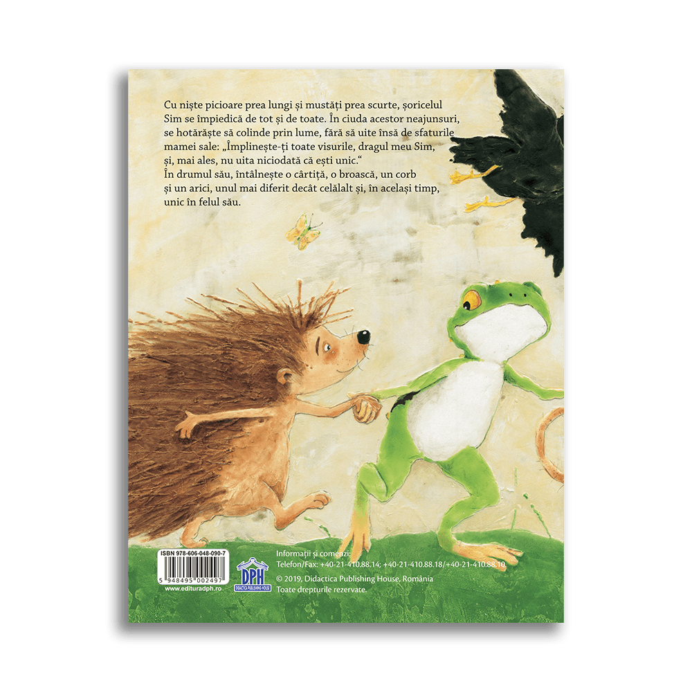 Cu niște picioare prea lungi și mustăți prea scurte, șoricelul Sim se împiedică de tot și de toate. În ciuda acestor neajunsuri, se hotărăște să colinde prin lume, fără să uite însă de sfaturile mamei sale: „Împlinește-ți toate visurile, dragul meu Sim, și, mai ales, nu uita niciodată că ești unic.”