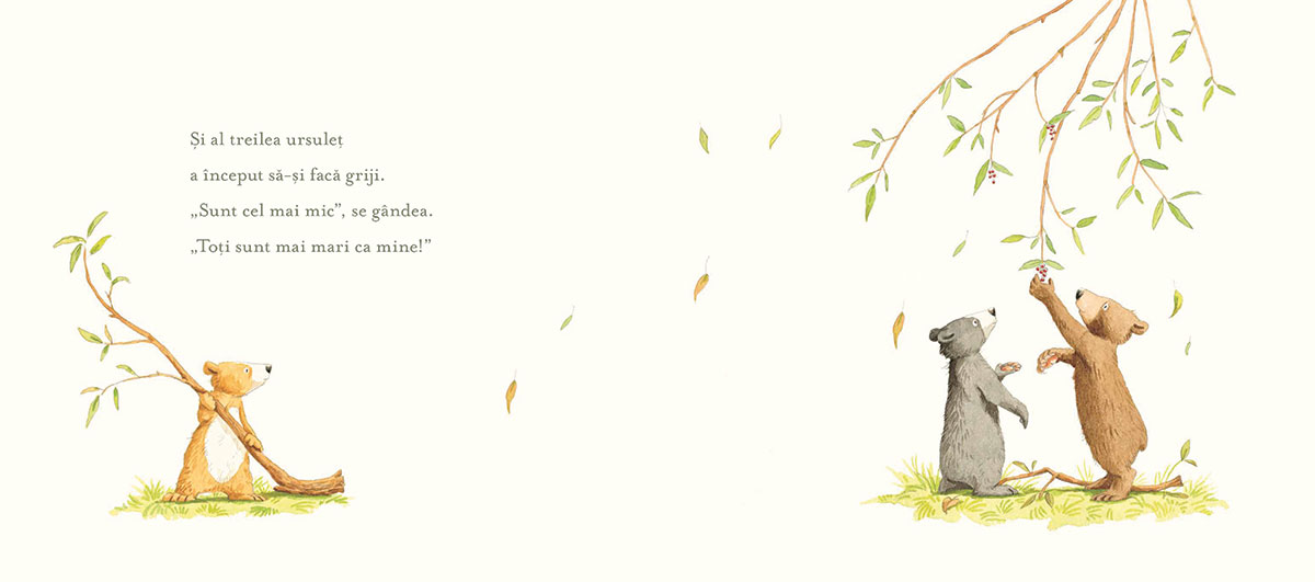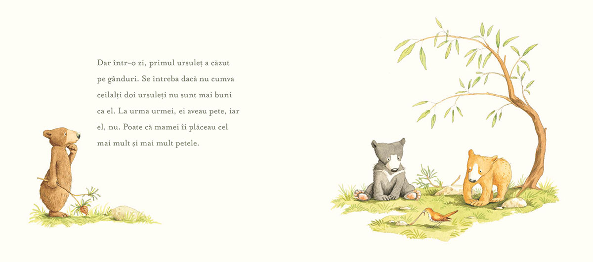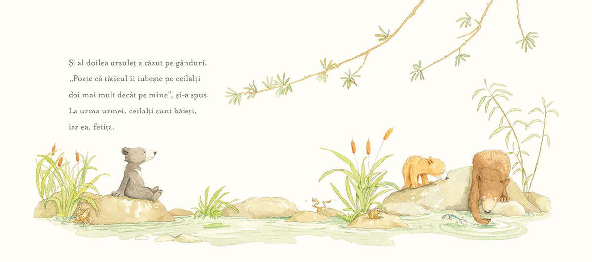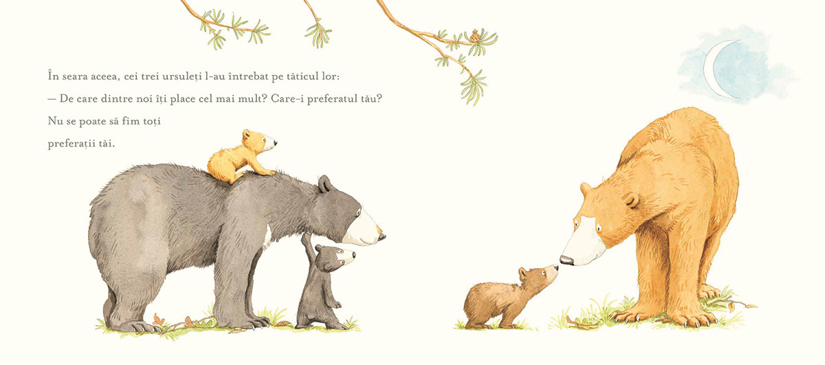 Dar într-o zi, cei trei ursuleți au început să se întrebe pe care dintre ei mama și tata îl iubesc cel mai mult. Care dintre ei era preferatul lor? Nu puteau fi toți trei, nu-i așa? Sau poate că…