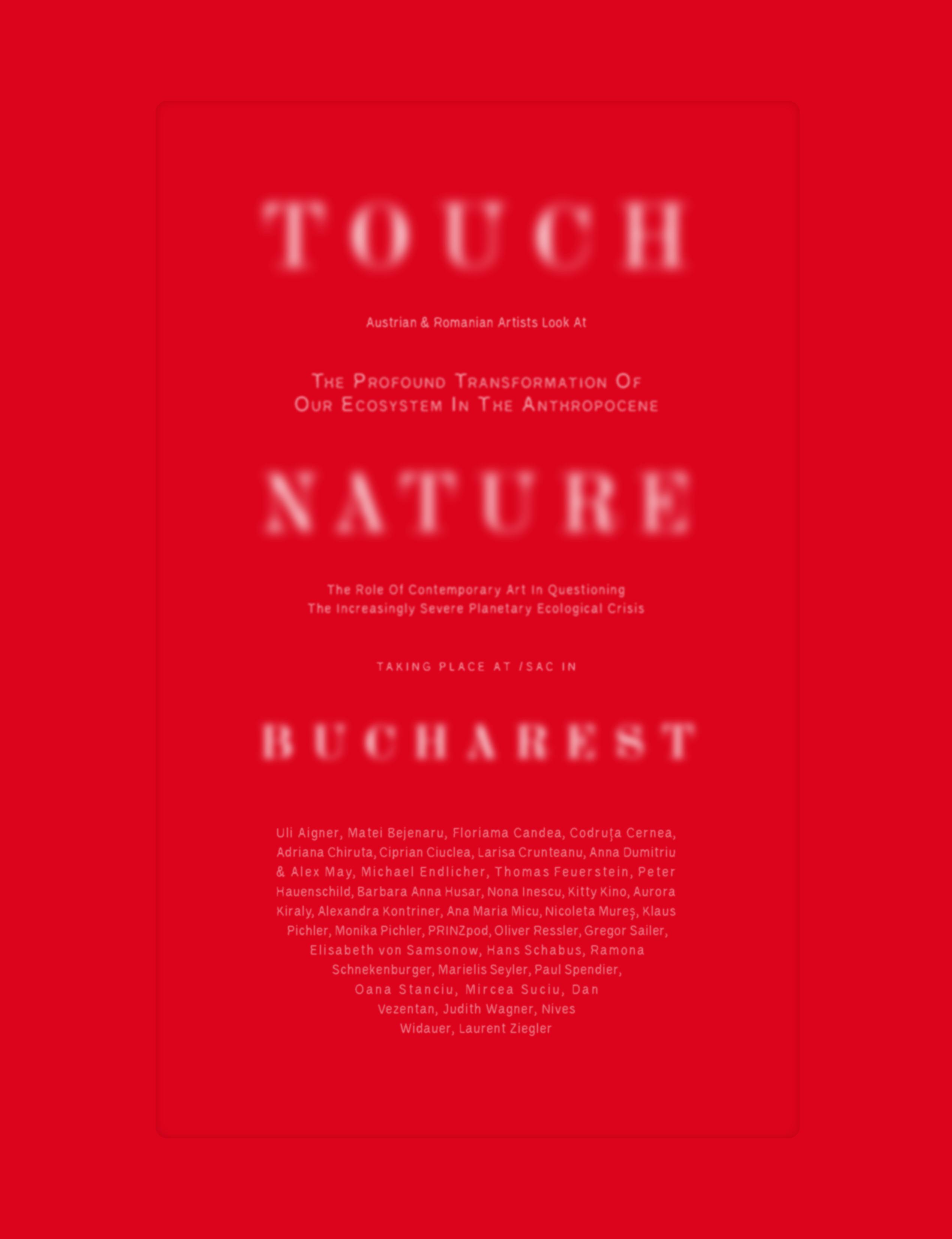 Texte de: Sabine Fellner, Alex Radu, Justin Baroncea, Maria Ghement, artistele/artiștii din expozițiaTouch Nature @ /SAC Bucharest
