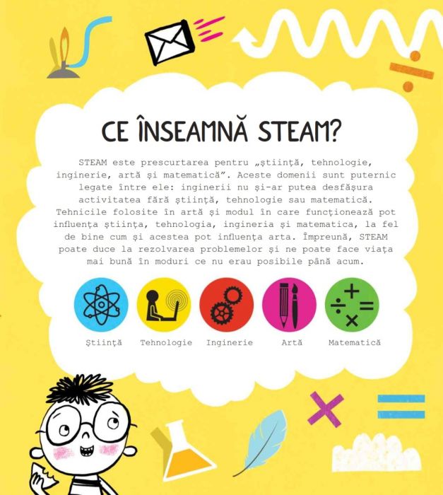 De la tipurile de energie de pe planeta noastră sau fizica din spatele undelor sonore la gândirea creativă și tehnologia revoluționară, principiile de bază prezentate în ghid îți vor declanșa o pasiune pentru STEAM. Descoperă ce se întâmplă când aceste cinci domenii se întâlnesc!