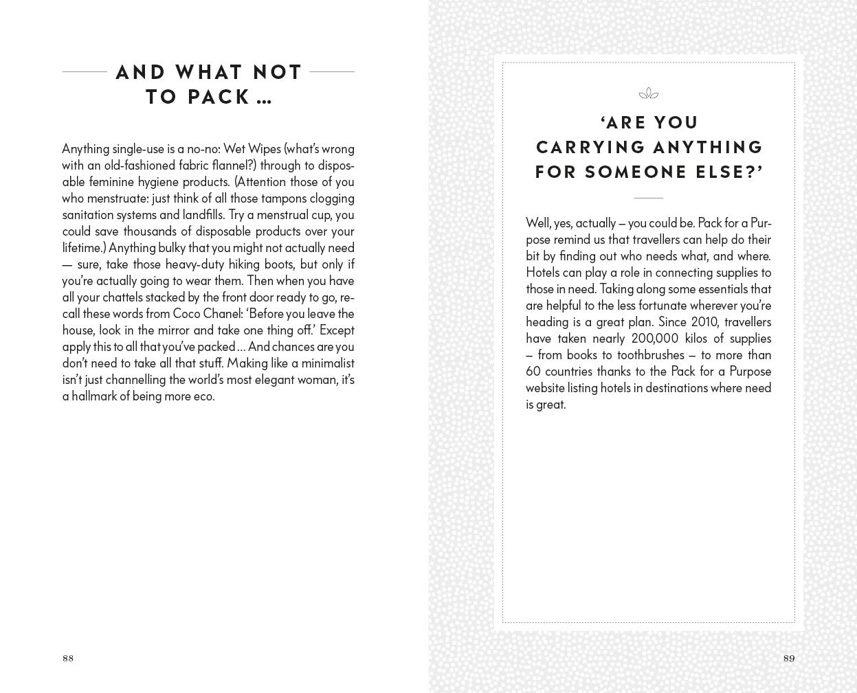 Whether it's explaining how to know which plane to take (yes, some are greener than others) or how to avoid the mini toiletries trap; this book shows that you can save the planet and still live life to the full.