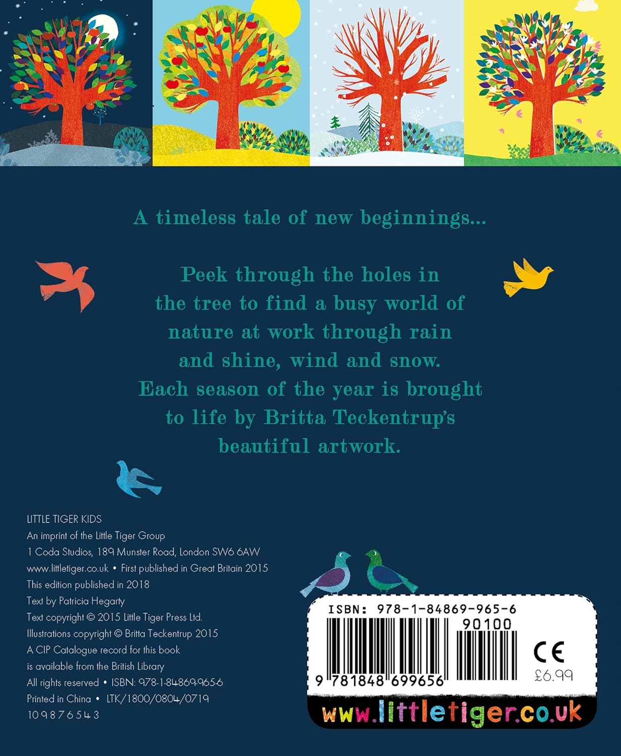 Explore the beauty of the changing seasons in this timeless peek-through board book with gorgeous artwork by Britta Teckentrup and lyrical text by Patricia Hegarty. Following the life-cycle of a tree through spring, summer, autumn and winter, your little one will be immersed in the rhythm of the seasons with this striking board book. Die-cuts let you peep through the pages and vibrant artwork is paired with gentle text to capture the nuances of the changing seasons.