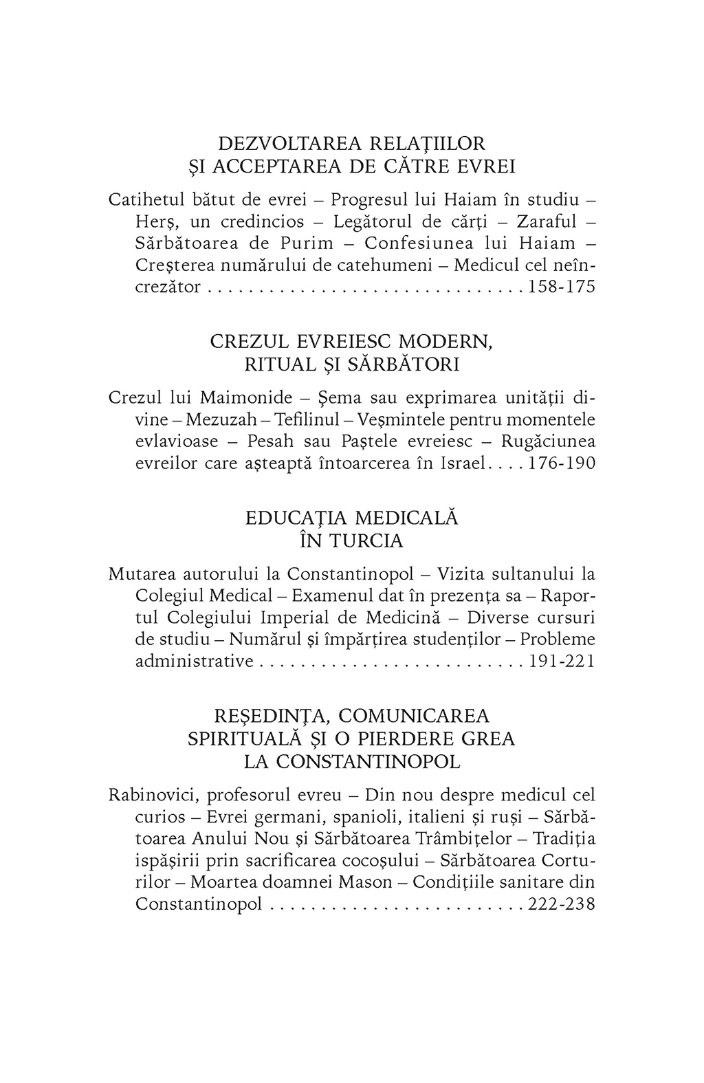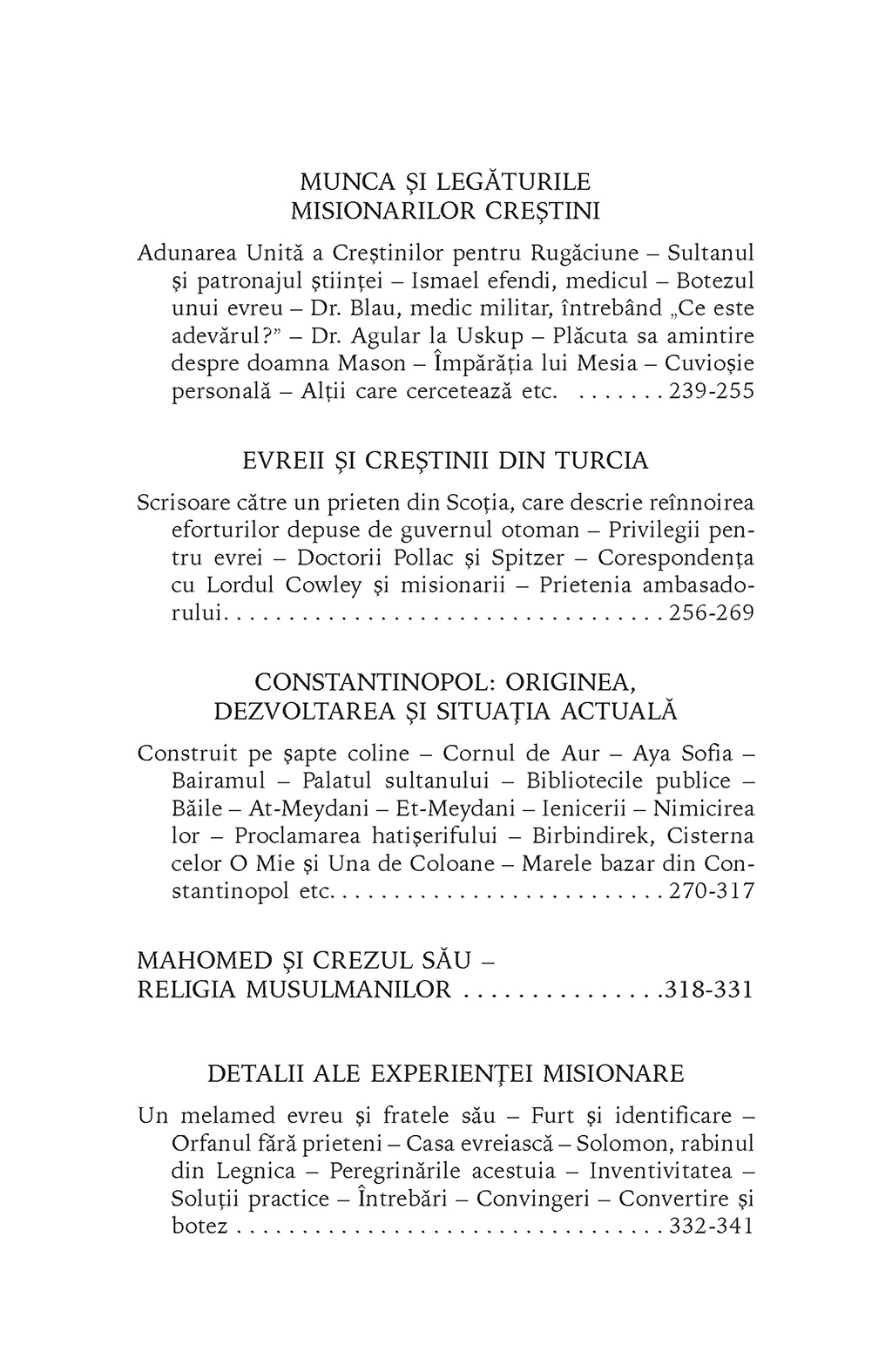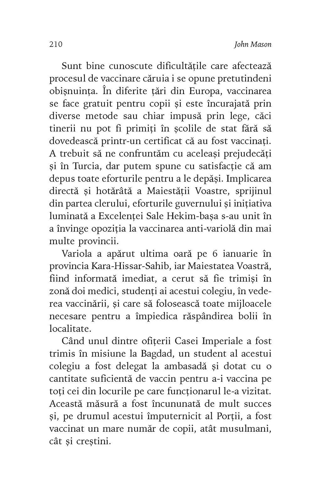 „John Mason ajunge în Moldova, apoi la Constantinopole, în calitate de medic misionar, cu un contract de trei ani – pe care nu îl va putea împlini pînă la capăt. La Iași ajunge la început de mai 1846, după un lung drum pe Mediterana și pe uscat apoi, trecînd prin carantina de la Galați și întîlnindu‑i pentru prima oară pe evreii localnici. Mason detaliază, utilizînd un fel de antropologie religioasă avant la lettre, sărbători și ritualuri observate în casele evreilor, elementele semnificative de calendar religios, portretizînd membrii de frunte ai comunității locale. Același spirit de observație se va manifesta și în capitala Imperiului Otoman, de această dată, însă, curiozitatea sa oprindu‑se asupra învățăturilor islamice și a Coranului. Descrierile privind starea evreilor din Iași, Iașii înșiși – capitală a Moldovei –, modalitățile prin care medicul putea interveni pentru a ușura suferințele trupești, interacțiunea cu localnicii fac lectura interesantă atît pentru istoricul epocii, cît și pentru profan. Rostul aventurii sale în Moldova și în Imperiul Otoman trebuie înțeles ca datorie a civilizației căreia îi aparținea și ca tribut firesc oferit propriei educații.” (Mihai-Răzvan Ungureanu)