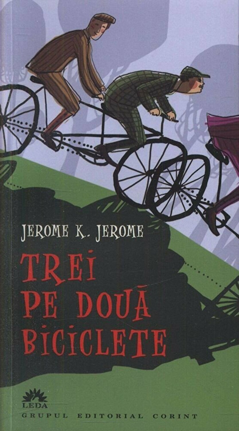 Celebrul umorist britanic Jerome K. Jerome continuă în Trei pe două biciclete aventurile eroilor din Trei într-o barcă, de data aceasta într-un periplu prin Germania, născut ca o revoltă mută împotriva vieţii clasei de mijloc din epoca edwardiană. Observator şi povestitor, dar şi personaj, autorul realizează o satiră la adresa mentalităţii germane, surprinsă în manifestările ei comice, ca şi a ordinii sociale prusace riguroase, satira punctată în contrapondere cu subtile ironii faţă de optica britanică.
