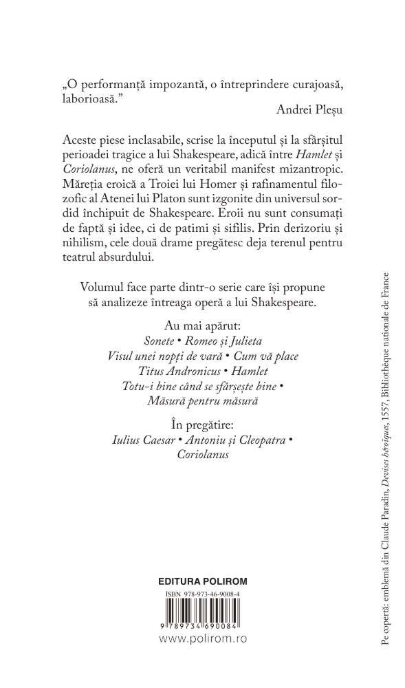 • Troilus si Cresida. Timon din Atena
