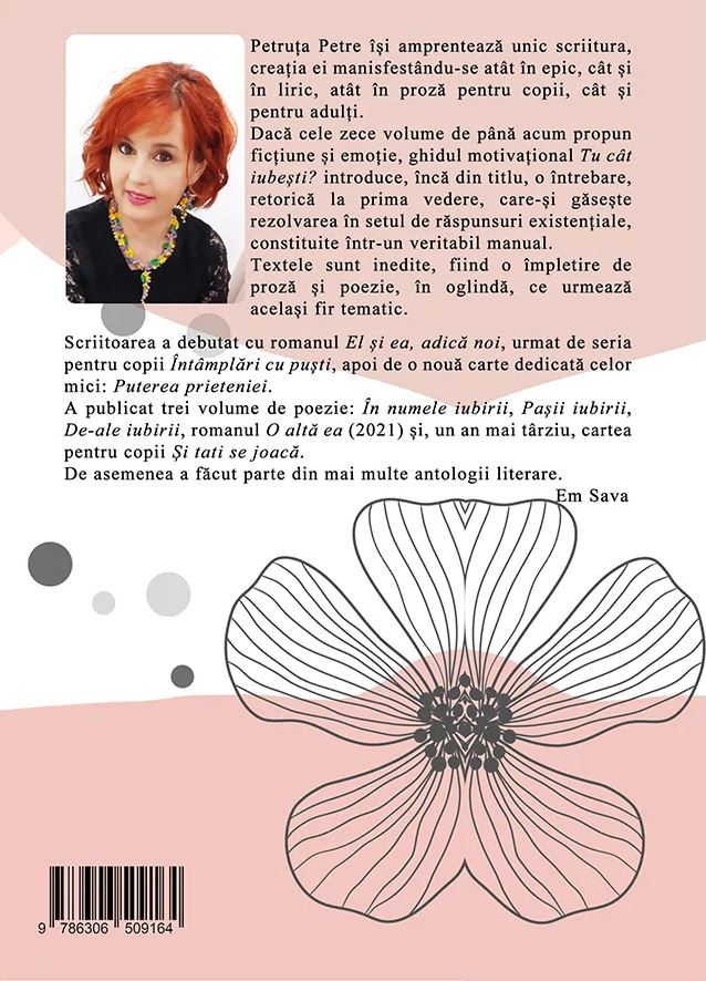 Dacă cele zece volume de până acum propun ficțiune și emoție, ghidul motivațional Tu cât iubești? introduce, încă din titlu, o întrebare, retorică la prima vedere, care-și găsește rezolvarea în setul de răspunsuri existențiale, constituite într-un veritabil manual.