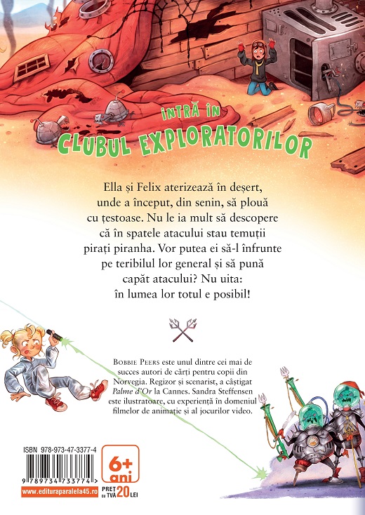 Ella şi Felix aterizează în deșert, unde a început, din senin, să plouă cu țestoase. Nu le ia mult să descopere că în spatele atacului stau temuții pirați piranha. Vor putea ei să-l înfrunte pe teribilul lor general și să pună capăt atacului? Nu uita: în lumea lor totul e posibil!