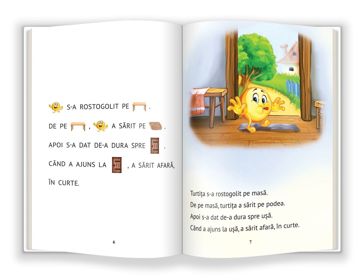 Fiecare fragment este prezentat în două variante: cu litere mari de tipar și imagini pentru copilul care încă citește cu ajutor, dar și cu litere mari și mici de tipar, pentru cel care exersează lectura cursivă. Cartea este recoamandată copiilor de 5-7 ani.