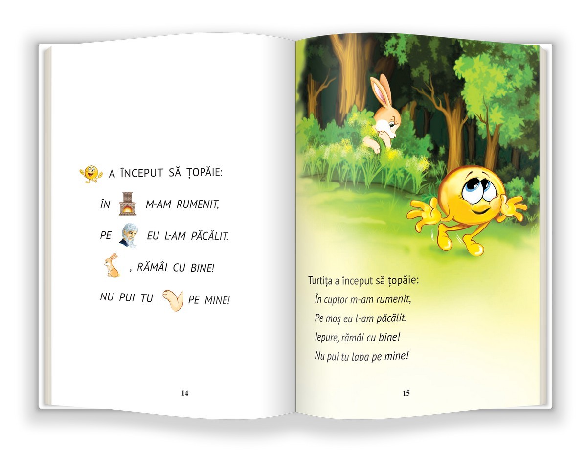 Turtița fermecată este povestea unei prăjiturele năstrușnice, care, în loc să se lase mâncată, o ia la goană în lumea largă. Copiii vor descoperi ce s-a întâmplat cu ea, învățând totodată să citească primele cuvinte.
