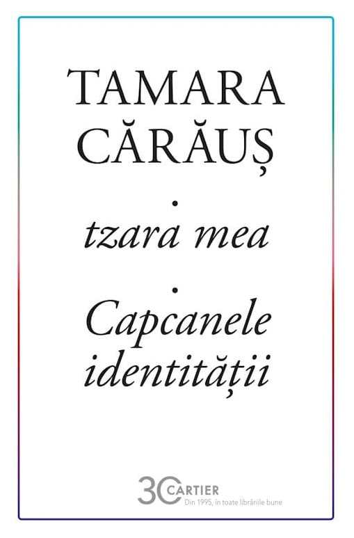 Între aceste coperți se adună două texte care au fost două cărți separate: tzara mea, publicată în 2001, și Capcanele identității, publicată în 2011.