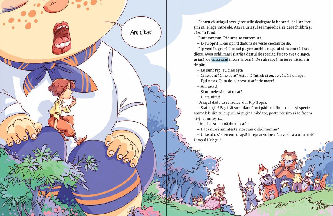 Într-o bună zi naivilor li se năzare că-n pădurea lor apare… un uriaș cum n-au mai pomenit nici în ziarul ciocănitorilor! Și mai e și chel. Și a uitat tot, tot, tot: cine e, de unde vine, cum îl cheamă…