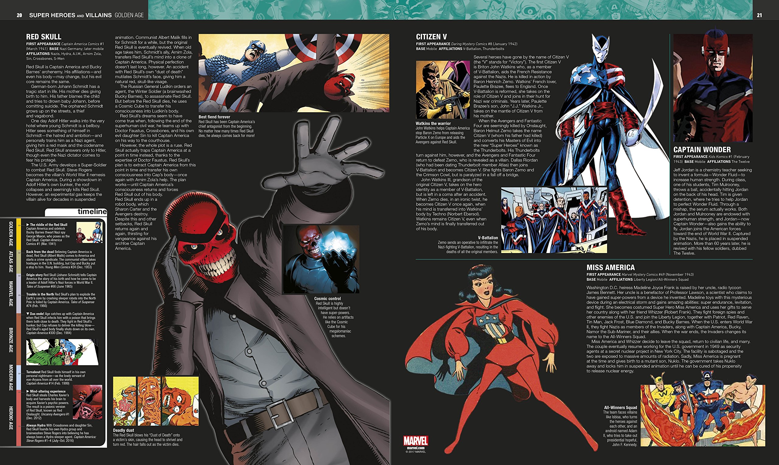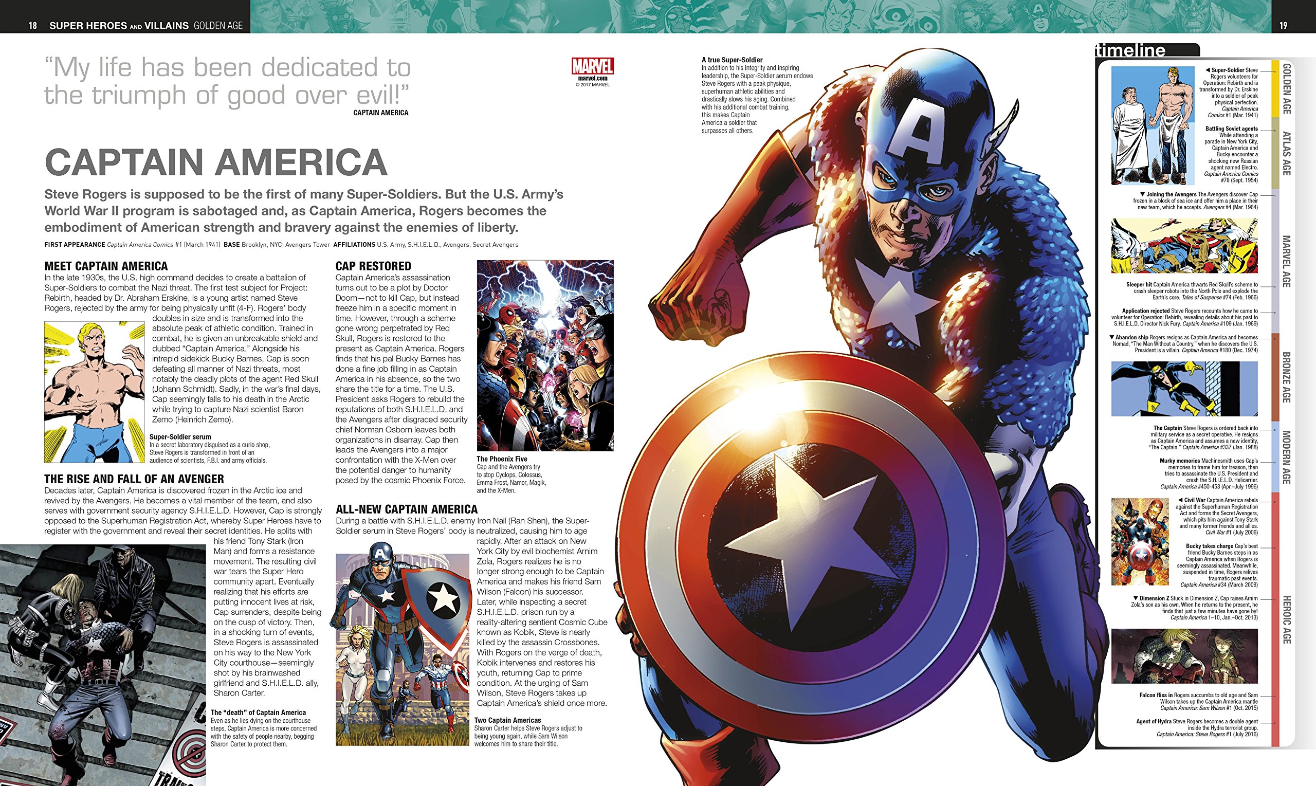 This definitive in-world guide to the Marvel Comics Universe features, in chronological order, every significant Marvel Comic character, location, vehicle, and weapon in the company's illustrious history.