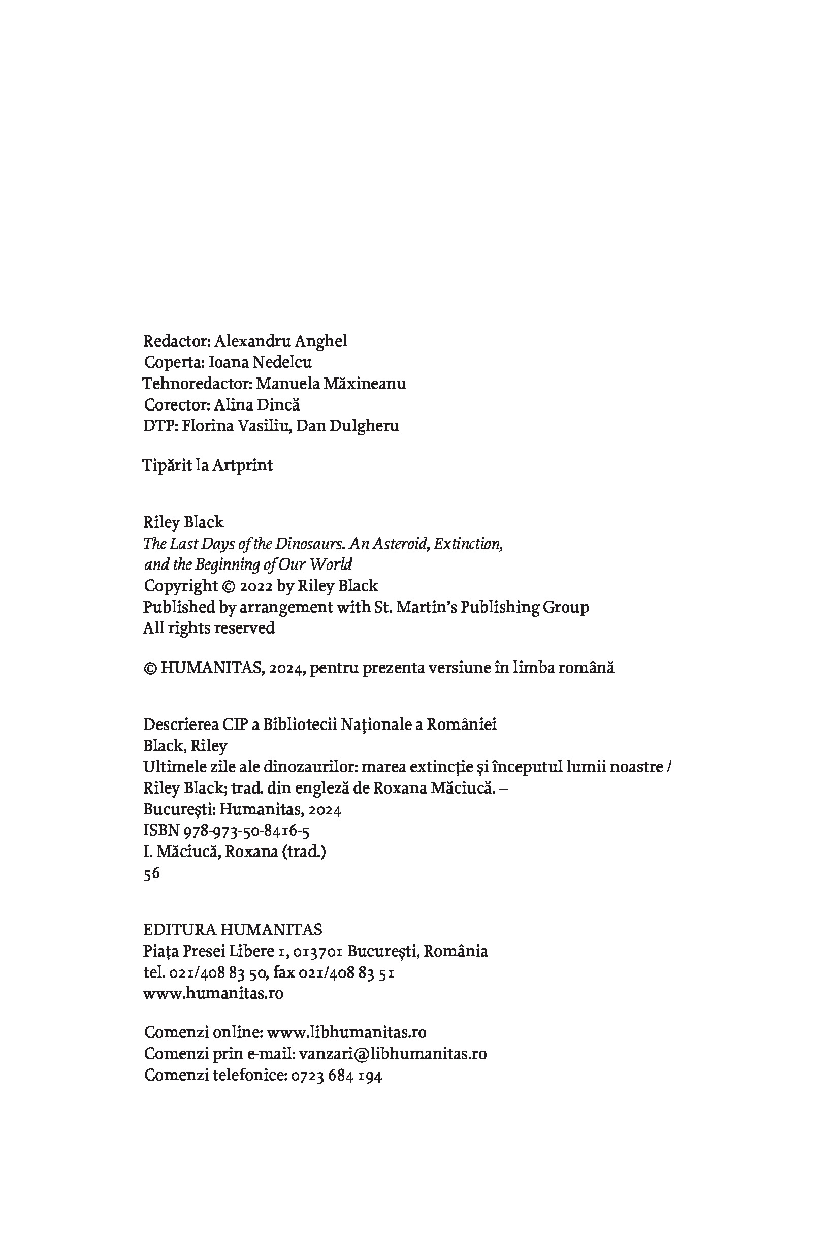 RILEY BLACK, care este pasionată de dinozauri de când se știe, a scris pentru publicațiile Wired, National Geographic, Scientific American și New Scientist. A fost consultant științific pentru franciza Jurassic World, iar în 2022 a apărut în documentarele NOVA Alaskan Dinosaurs și Dinosaur Apocalypse. Printre cărțile publicate se numără: Written in Stone: Evolution, the Fossil Record, and Our Place in Nature (2010); My Beloved Brontosaurus: On the Road with Old Bones, New Science, and Our Favorite Dinosaurs (2013); Skeleton Keys: The Secret Life of Bone (2019); Did You See that Dinosaur? (2020); Deep Time: A Journey through 4.5 Billion Years of Our Planet (2021).