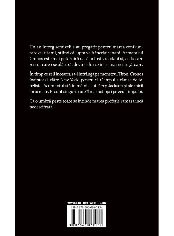 În timp ce zeii încearcă să-l înfrângă pe monstrul Tifon, Cronos înaintează către New York, pentru că Olimpul a rămas de izbelişte. Acum totul stă în mâinile lui Percy Jackson şi ale micii lui armate. Ei sunt singurii care îl mai pot opri pe zeul timpului.