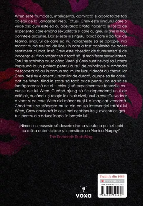 Totul se schimbă brusc când Wren și Crew sunt nevoiți să lucreze împreună la un proiect pentru cursul de psihologie și amândoi descoperă că au în comun mai multe lucruri decât au crezut. Iar Crew, deși nu e adeptul relațiilor de durată, ajunge să fie obsedat de Wren, fiind în stare să facă orice pentru ca ea să se îndrăgostească de el – chiar și să experimenteze fanteziile ascunse ale lui Wren. Curând ajung să fie dependenți unul de celălalt, ducându-și relația la un alt nivel, unul la care Crew doar a visat și pe care Wren nici măcar nu și l-a imaginat vreodată.