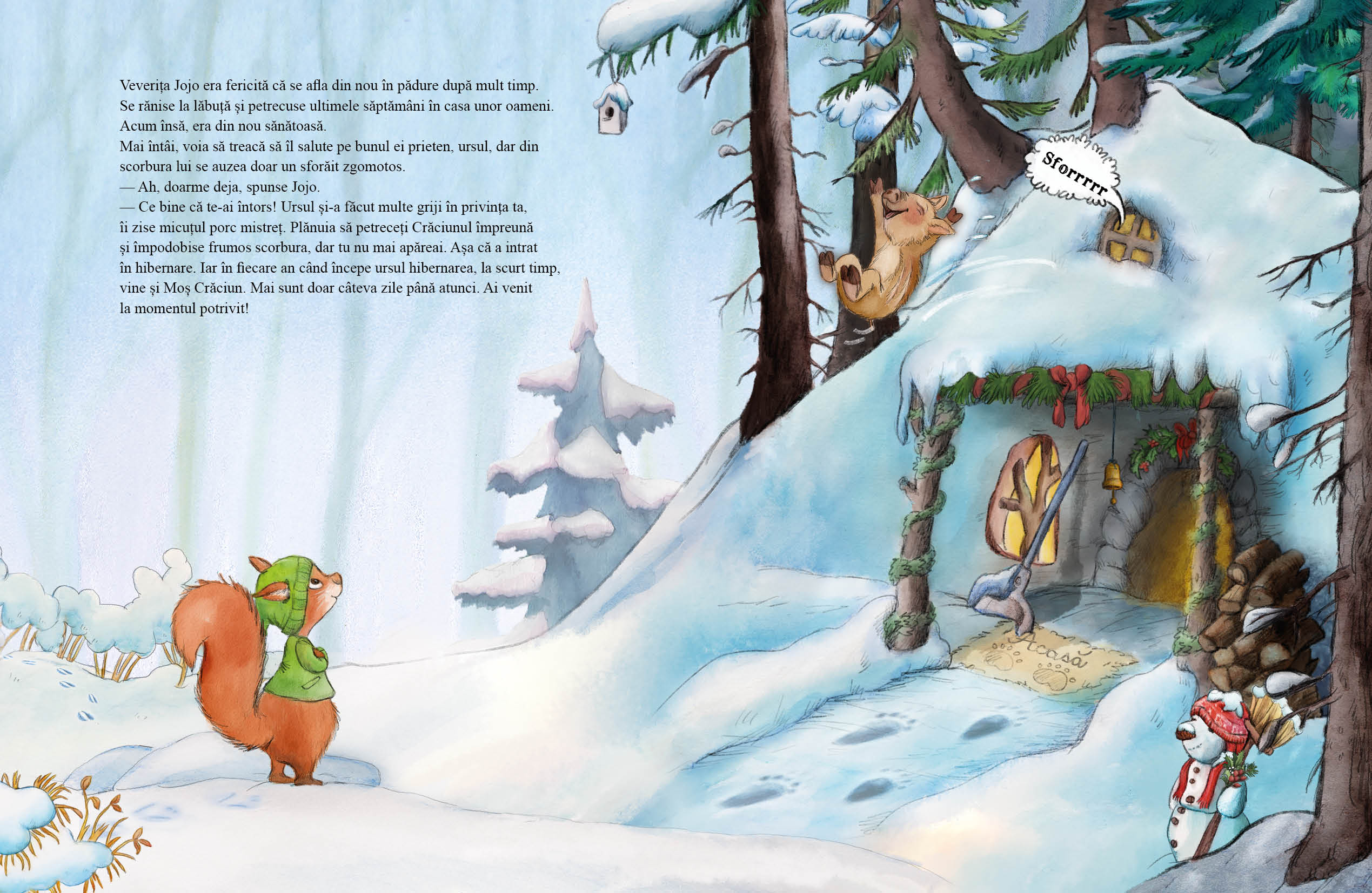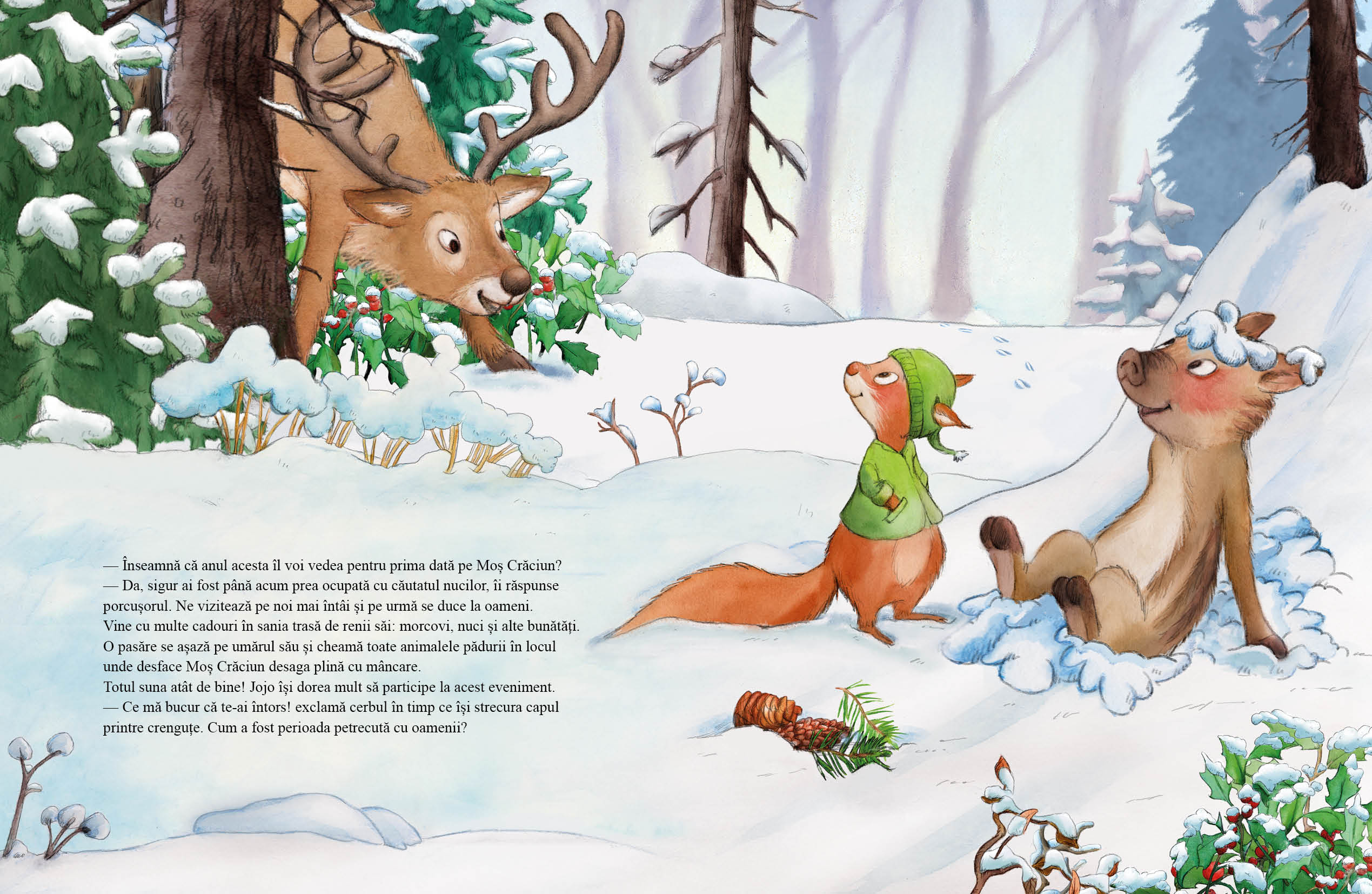 Veverița Jojo le povestește animalelor că oamenii îi pregătesc lui Moș Crăciun o mică surpriză înainte să vină. Animalele cred că acest lucru este foarte frumos și decid să-i ofere lui Moș Crăciun ceva cu adevărat special. Dar ce surpriză l-ar bucura cel mai mult pe Moș Crăciun? Când cade prima zăpadă, toate animalele din pădure așteaptă cu nerăbdare Crăciunul și cadourile.