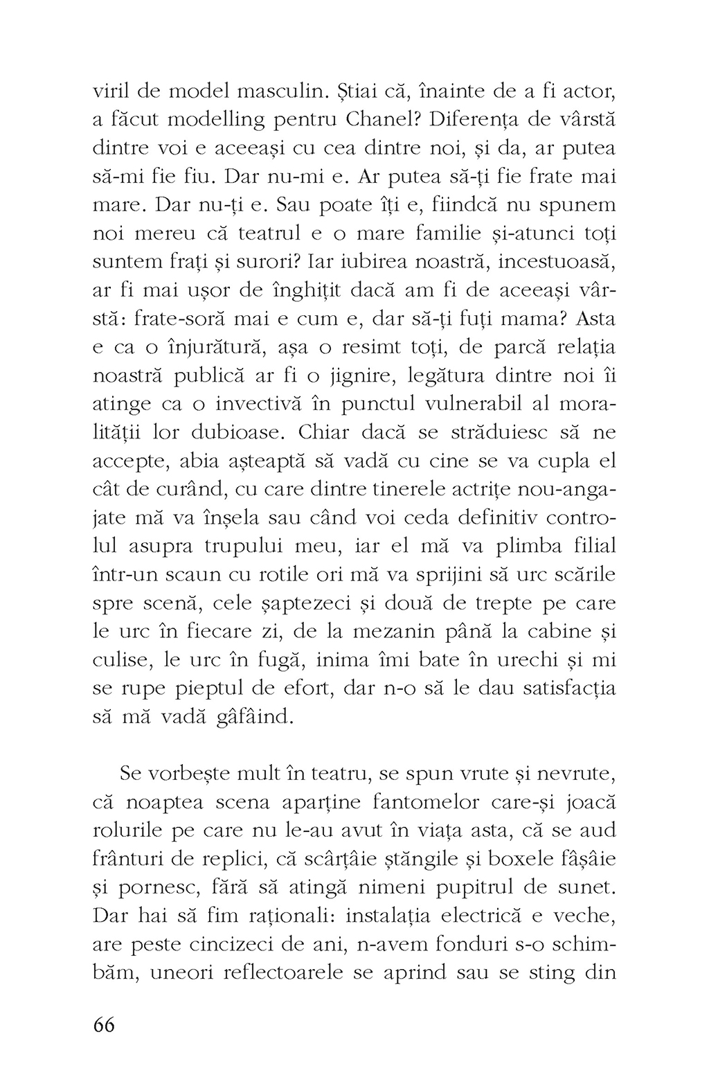 „Ce e cititul în nori dacă nu jocul liber al fanteziei, semnul imaginației puse la lucru? Alina Nelega ne introduce cu titlul romanului în fabulația de gradul doi cînd confruntă una din piesele de căpătîi ale teatrului cu ipoteza răsturnată a nebuniei personajului. Nu, fiul nu joacă nebunia, ci e bolnav, iar mama, care îl cunoaște dincolo de masca socială, se scufundă împreună cu el în purgatoriul suferinței psihice. Născut din stăpînirea mecanismelor dramaturgiei și din fidelitatea Alinei Nelega pentru scenă, romanul explorează în cercuri concentrice ficțiunea autonomă, edificată pe referințe la lumea teatrală autohtonă.” (Oana Cristea Grigorescu)