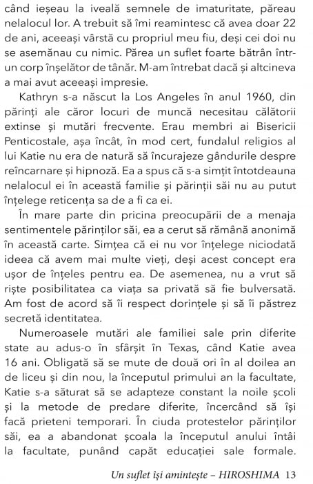 Amintirea persistenta a unei morti cumplite a trecut dincolo de timp si spatiu si a determinat-o pe aceasta tanara sa apeleze la terapia vietilor trecute. Aceasta descoperire uimitoare a vietii si mortii unui om de pe cealalta parte a planetei si efectul sau asupra unei fete din America din zilele noastre s-au facut prin intermediul regresiei hipnotice.