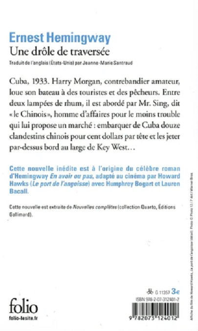 Cette nouvelle inédite est à l'origine du célèbre roman d'Hemingway En avoir ou pas, adapté au cinéma par Howard Hawks (Le port de l'angoisse) avec Humphrey Bogart et Lauren Bacall.