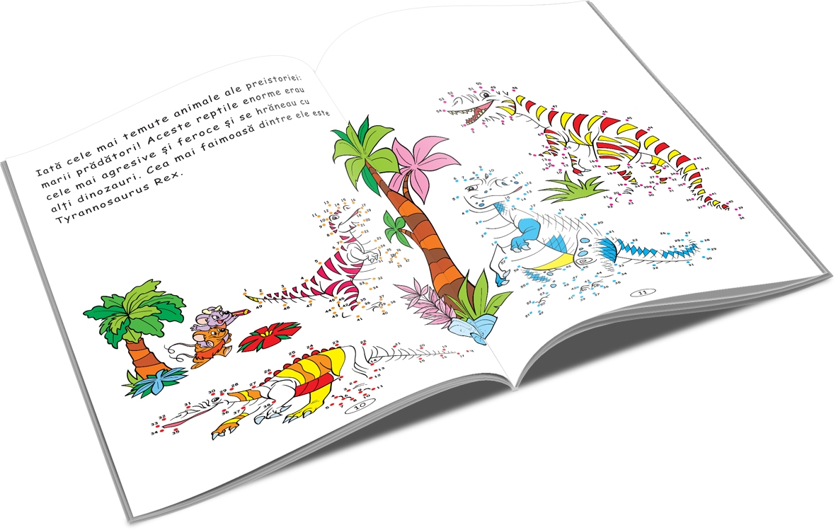 Unește punctele și descoperă multe desene fantastice! Te poți distra colorând formele cu creioane și carioci.