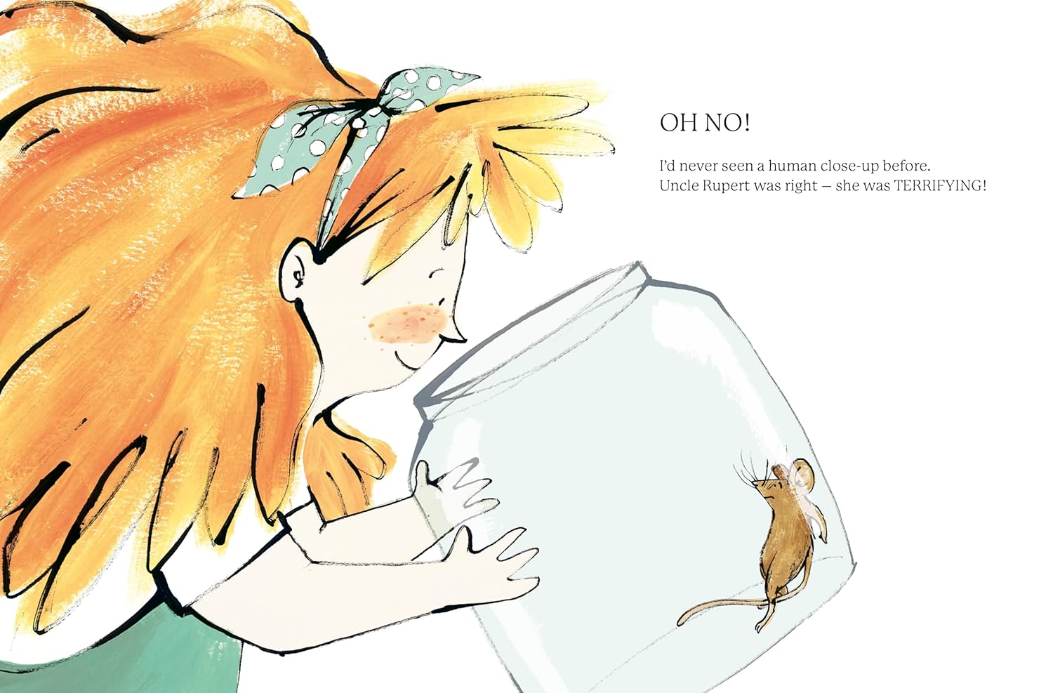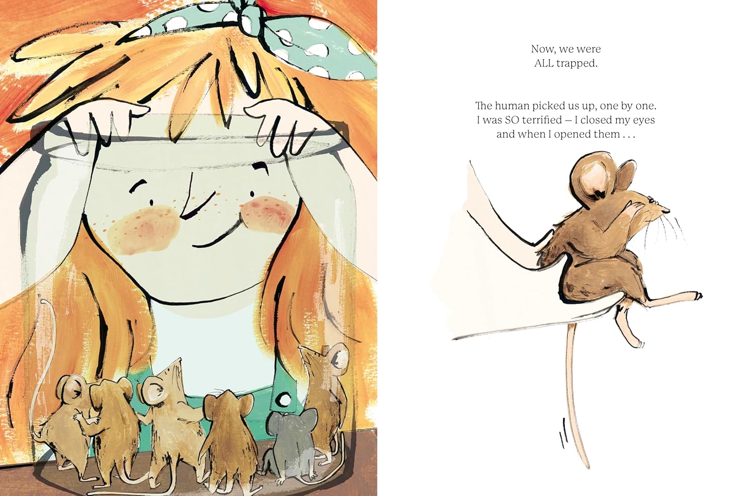 At first, the mice are wary, but curiosity soon takes over. They investigate the strange objects and delicious food their guests have brought with them and decide maybe humans aren’t so bad after all . . . until one mouse gets trapped in a jar.
