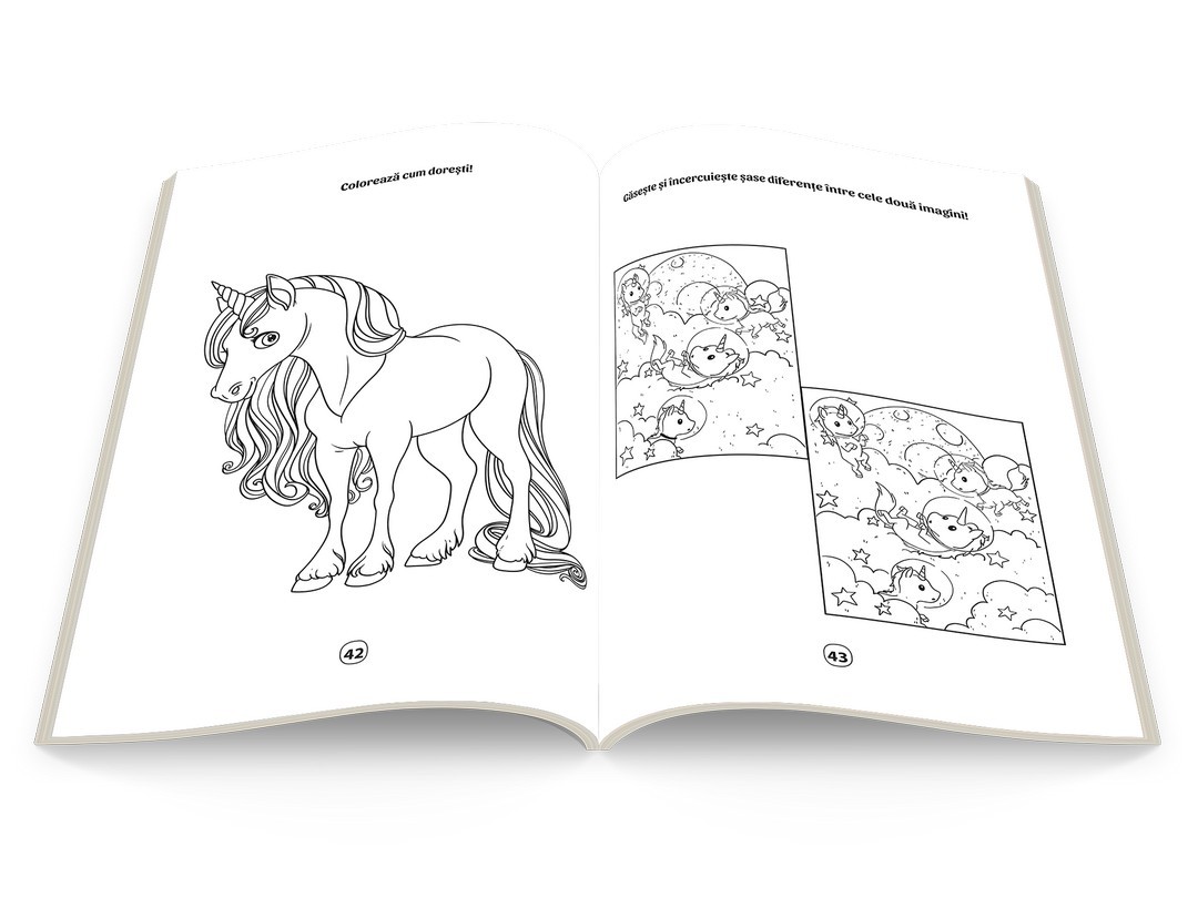 Descoperă lumea magică unicornilor! Colorează și rezolvă activitățile din această carte împreună cu personajele amuzante ca să-ți dezvolți atenția și imaginația! Aventura te așteaptă!