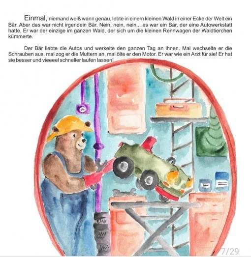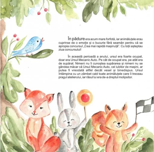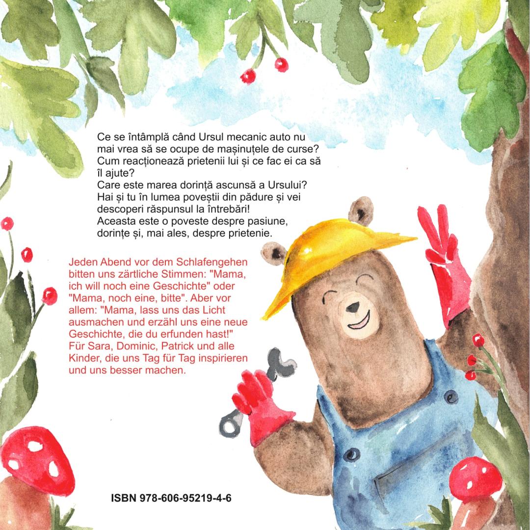 "Ursul Mecanic Auto si Cursa de Masini" – este o poveste captivanta care aduce in prim plan aventura si prietenia. Cartea le arata copiilor ca nimeni nu este singur niciodata si intotdeuna va exista cineva care sa ii sustina si sa ii incurajeze sa infrunte orice provocare si sa-si indeplineasca dorintele.