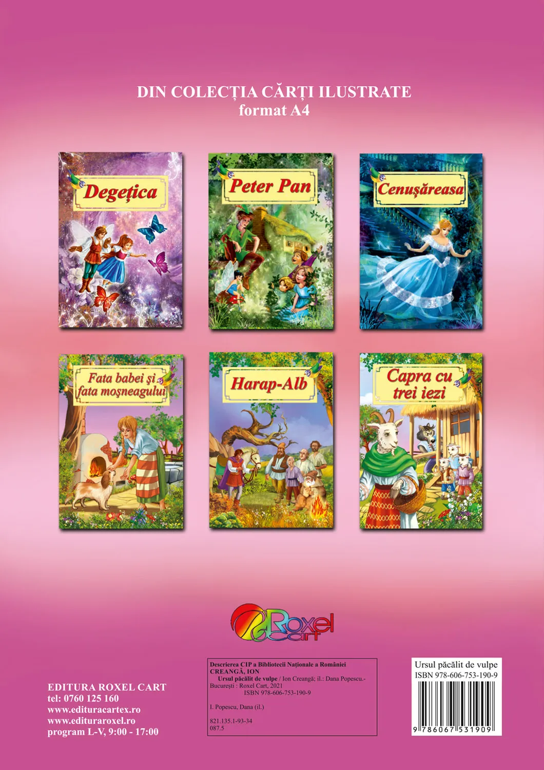Ursul pacalit de vulpe repovestita dupa Ion Creanga este o carte potrivita pentru copiii de gradinita si cei din clasele mici, care abia au invatat sa citeasca. Ilustratiile colorate stimuleaza creativitatea copiilor, care pot vizualiza mai usor firul povestii.