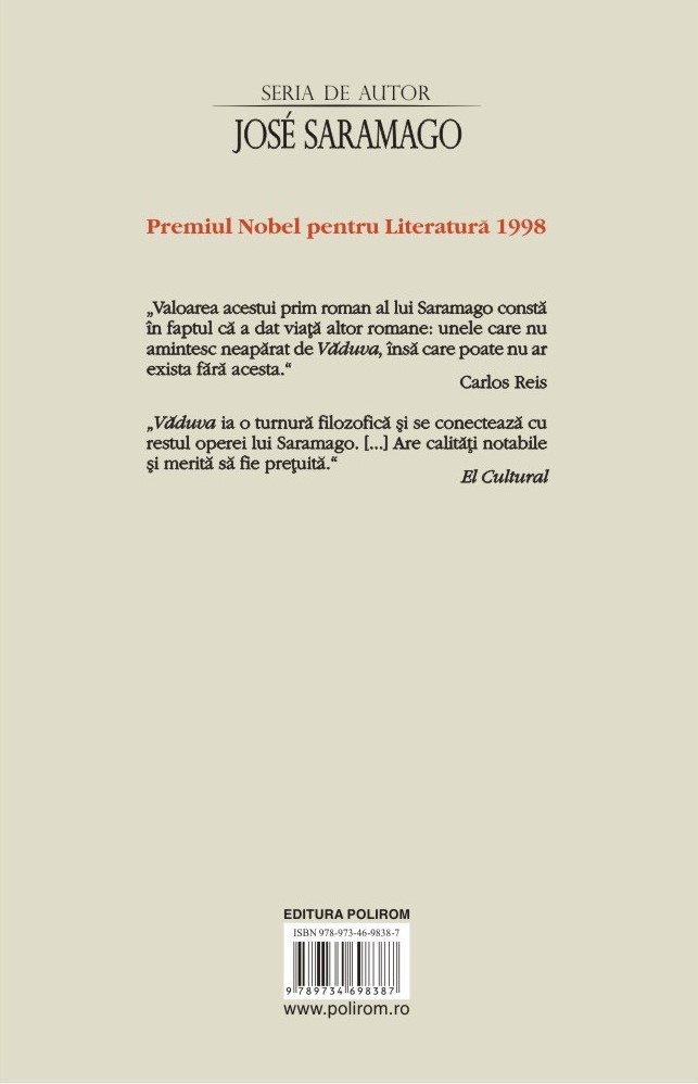 „Valoarea acestui prim roman al lui Saramago constă în faptul că a dat viață altor romane: unele care nu amintesc neapărat de Văduva, însă care poate nu ar exista fără acesta.” (Carlos Reis)