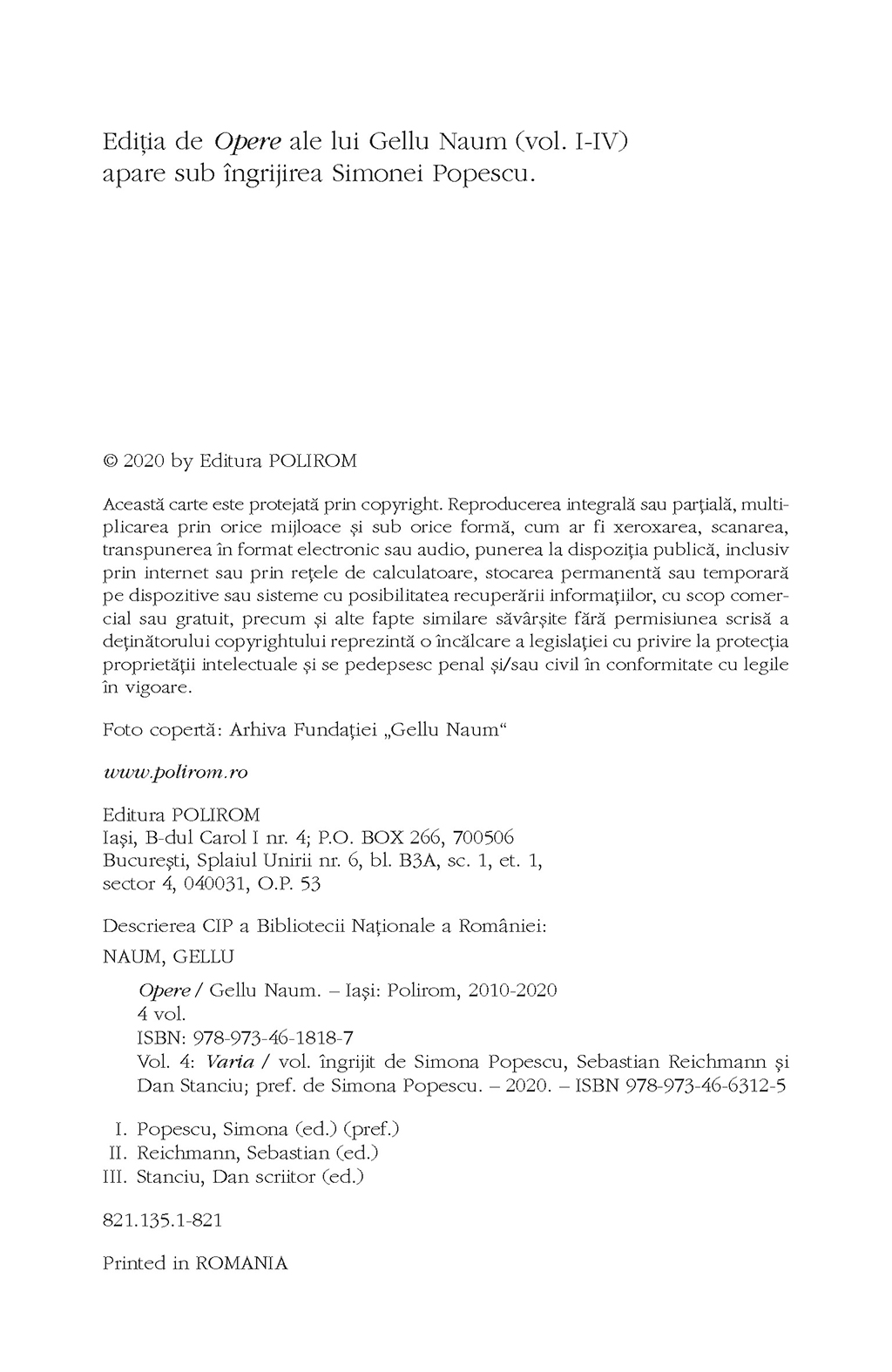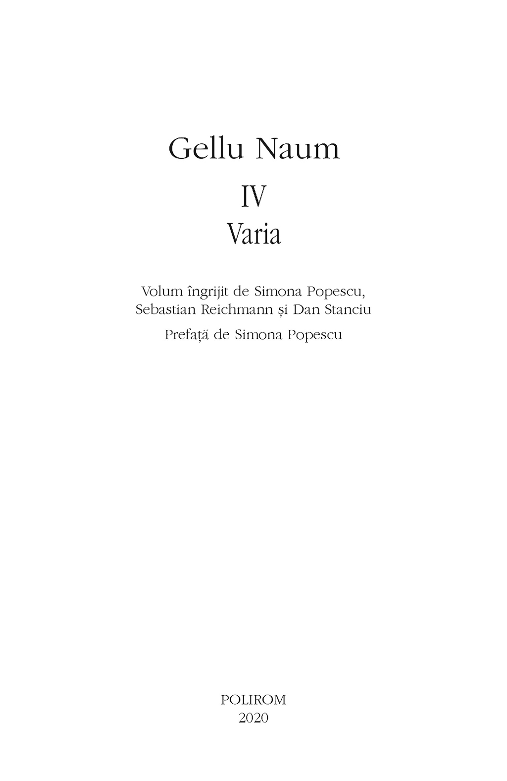 Volum îngrijit de Simona Popescu, Sebastian Reichmann şi Dan Stanciu