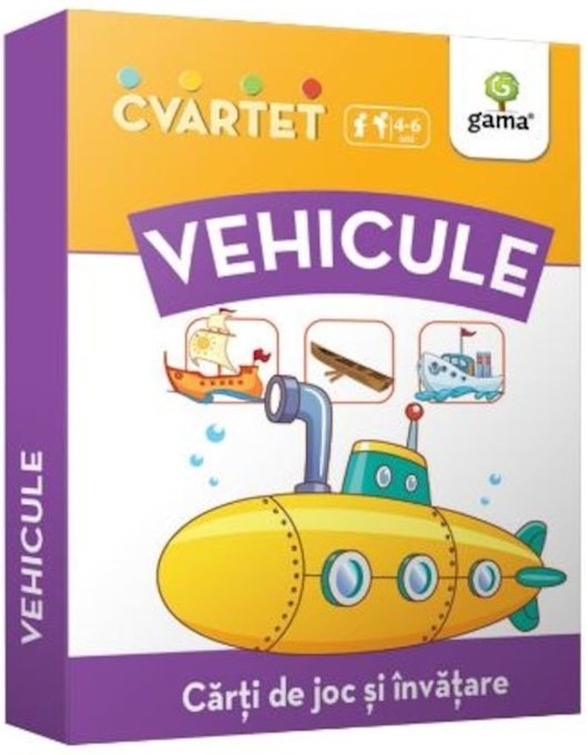 Cvartet - Vehicule este un joc de carti educativ. In timp ce incearca sa formeze cele mai multe "cvartete" pentru a castiga, copilul invata despre diverse mijloace de transport, isi imbogateste vocabularul si socializeaza cu alti copii.